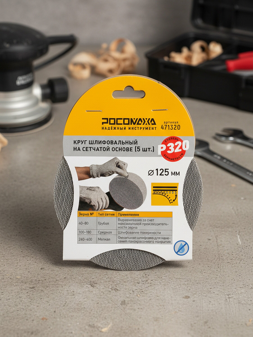 Круг шлифовальный Росомаха d125 мм, P320 — идеальное решение для точной шлифовки: сетчатая основа, 5 шт в упаковке, быстрый результат без перегрева.