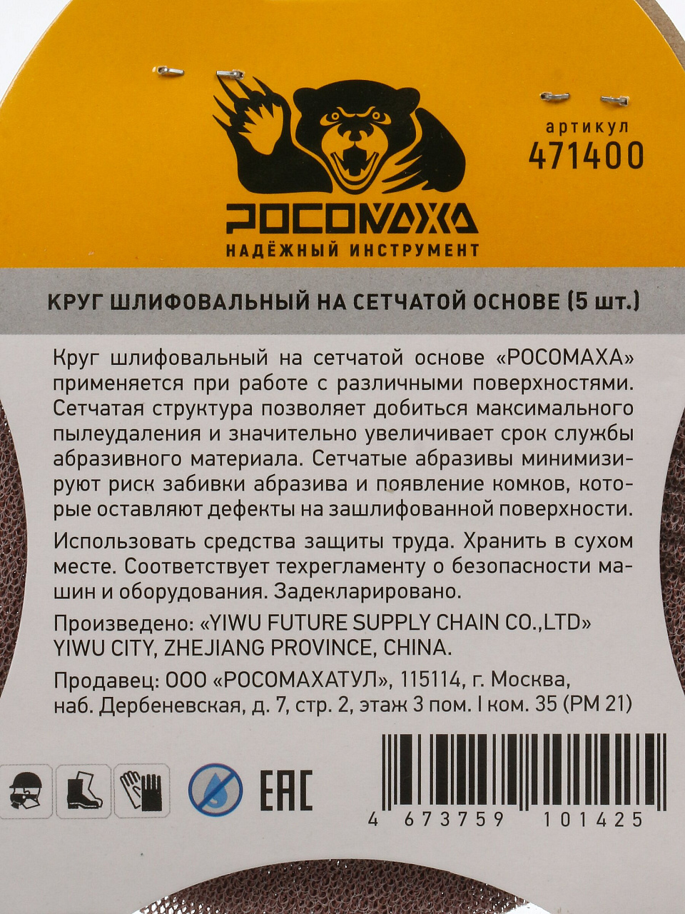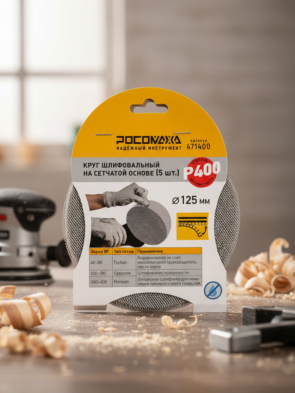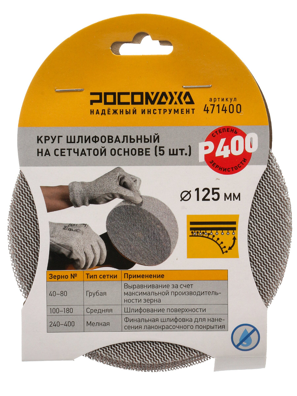 Круг шлифовальный Росомаха 125 мм P400 — идеальный выбор для чистовой обработки дерева и металла: сетчатая основа, высокая износостойкость, 5 шт. в упаковке.