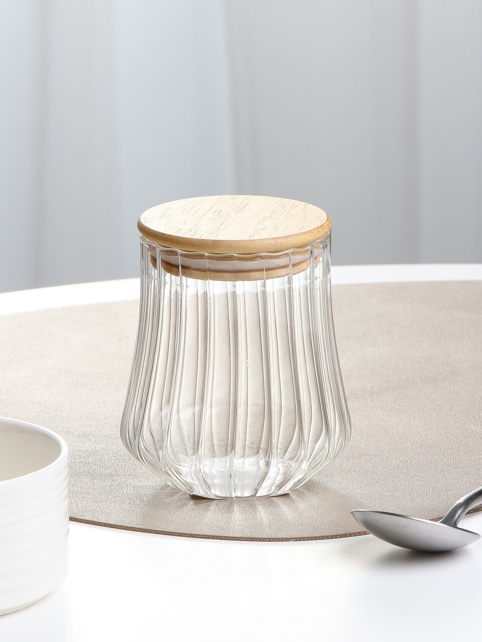 Стеклянная банка для сыпучих продуктов Daniks Бонн 0.4 л с крышкой — компактное хранение, защита свежести, стильный акцент для кухни или дачи.