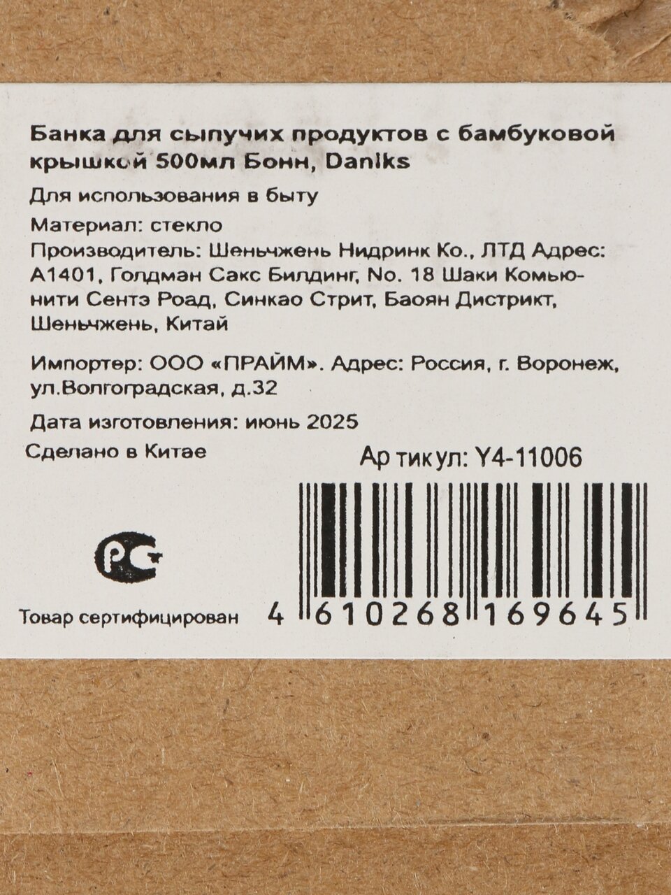 Вы можете приобрести «Банка для сып продуктов, стекло, 0.5 л, с крыш, Бонн, Daniks, Y4-11006» и другие товары в нашем интернет-магазине в Иваново по низким ценам и с бесплатным самовывозом.