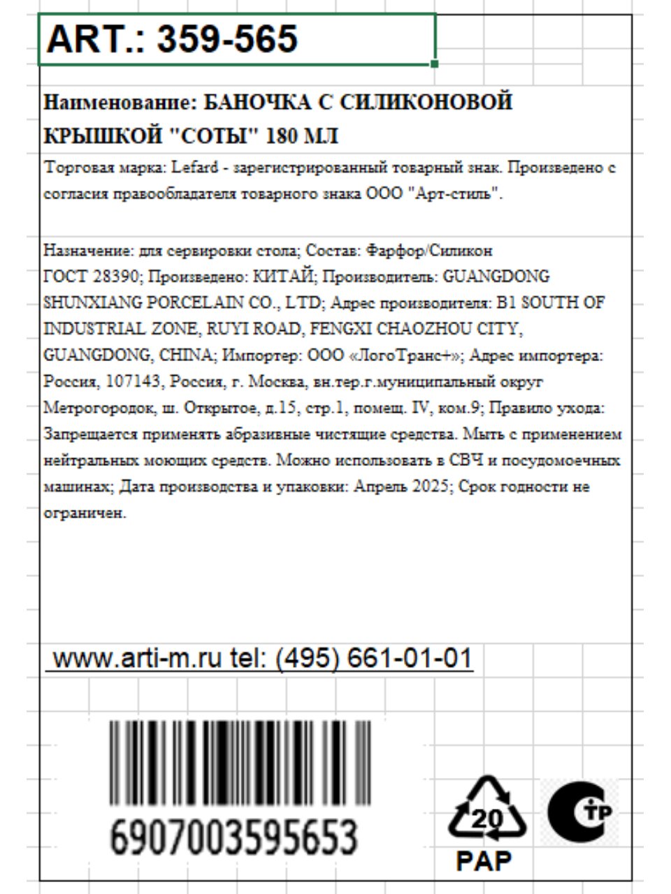 Вы можете приобрести «Банка для меда и варенья, фарфор, 0.18 л, с крышкой, с силиконовой крышкой, Lefard, Соты, 359-565» и другие товары в нашем интернет-магазине в Серпухове по низким ценам и с бесплатным самовывозом.