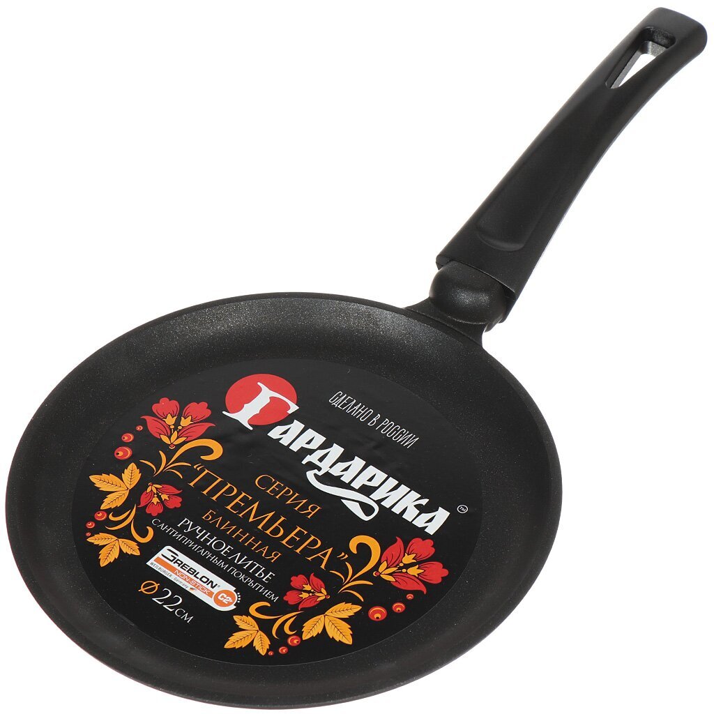 Вы можете приобрести «Блинница алюминий, 22 см, антипригарное покрытие, Гардарика, Премьера, 0822-03, бакелитовая ручка» и другие товары в нашем интернет-магазине в Коврове по низким ценам и с бесплатным самовывозом.