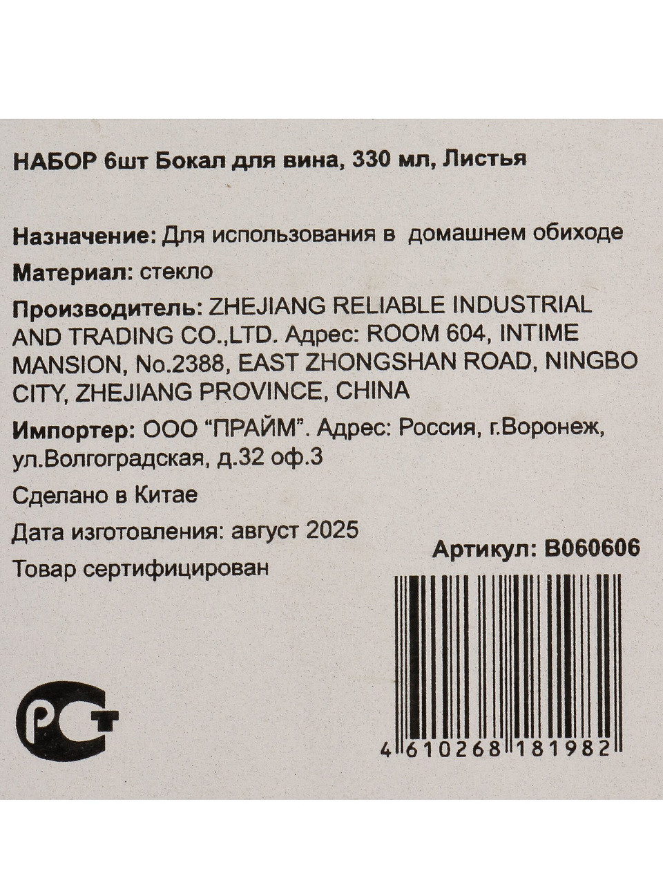 Комплект из 6 бокалов удобно использовать для семейных застолий, встреч с друзьями или праздничных мероприятий. Это экономичнее, чем покупать поштучно, и позволяет оформить стол в едином стиле.