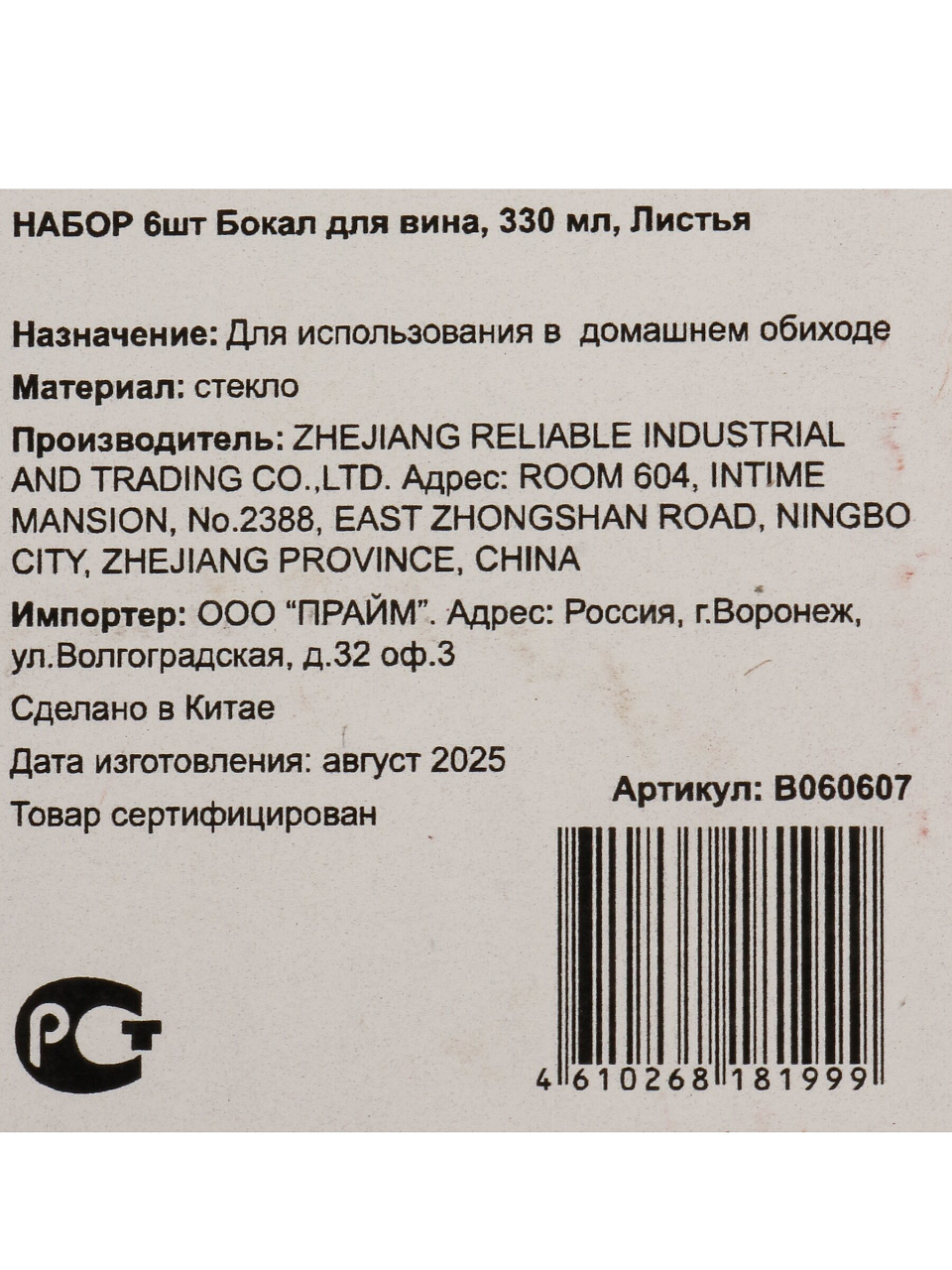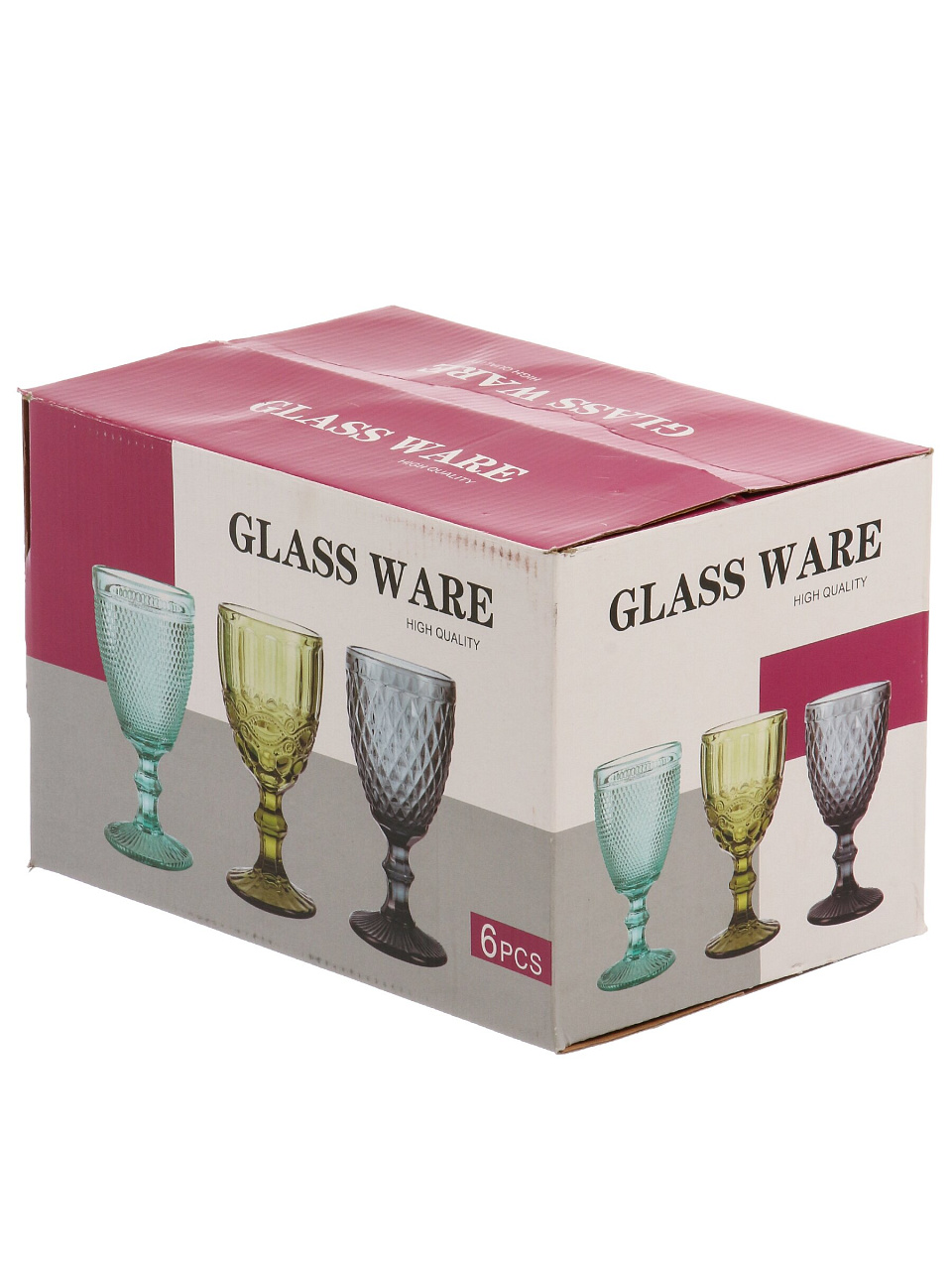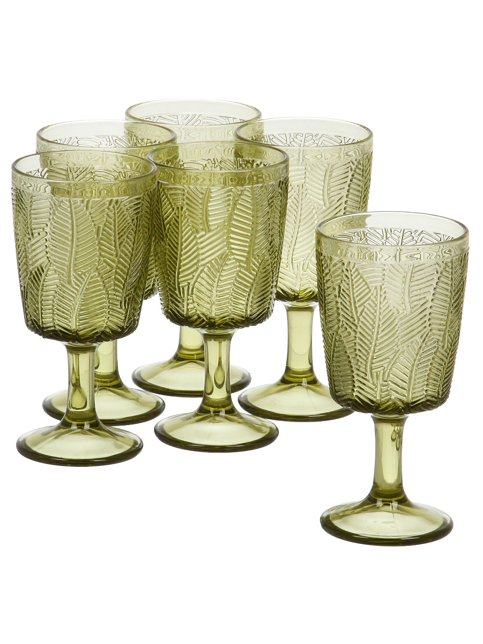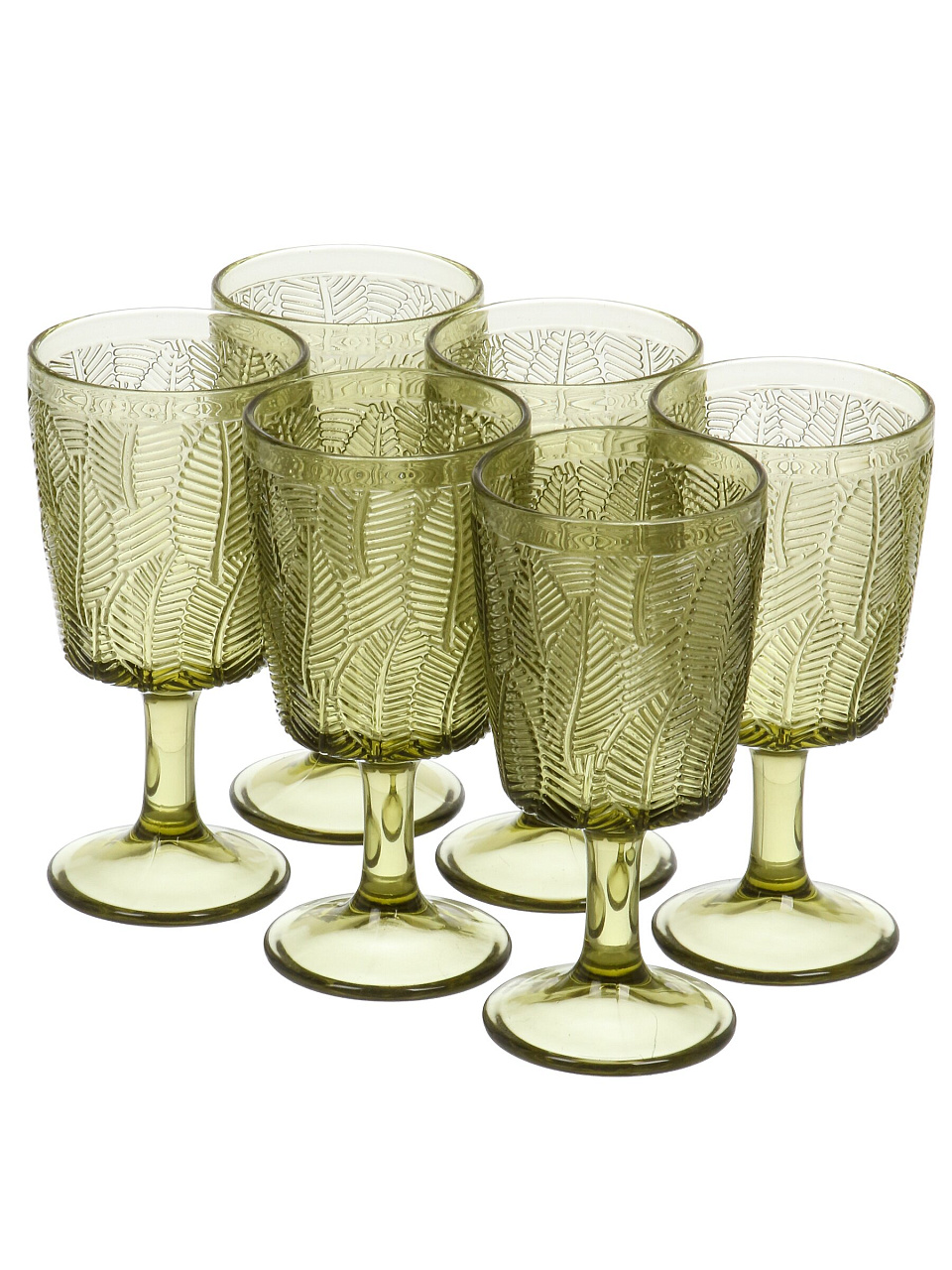 Бокал для вина, 330 мл, стекло, 6 шт, Листья, зеленые, B060607