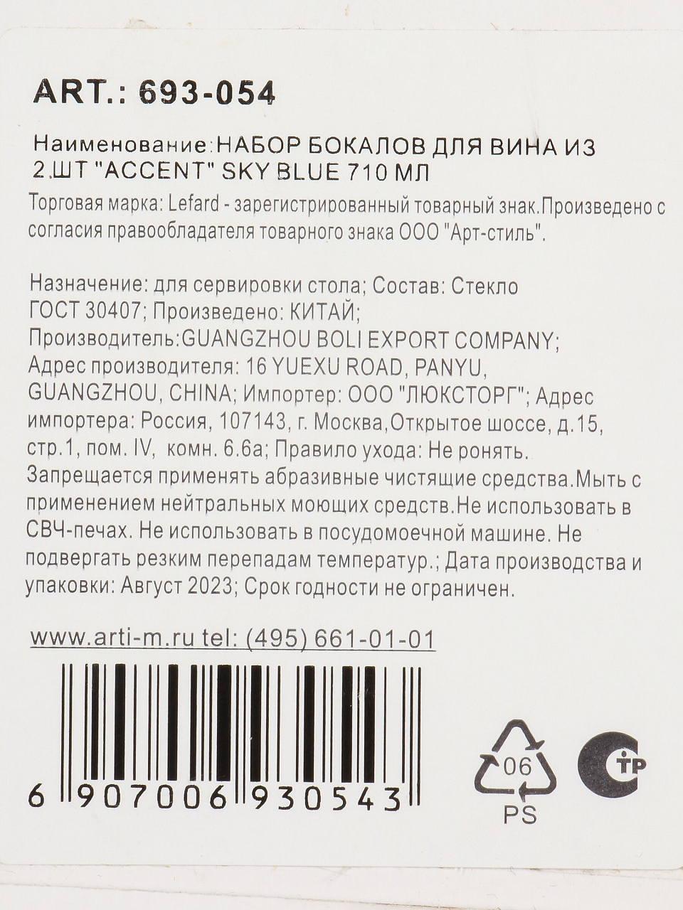 Бокал для вина, 710 мл, стекло, 2 шт, Lefard, Accent Sky Blue, 693-054