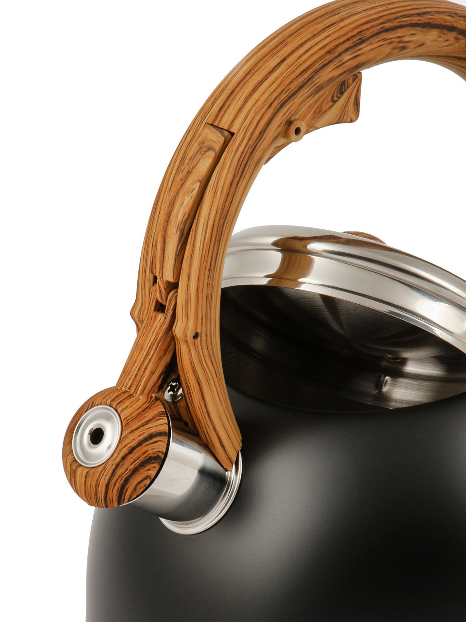 Термоизолированная ручка из нейлона не нагревается даже при интенсивном кипячении, что защищает руки от ожогов и обеспечивает комфортное использование.