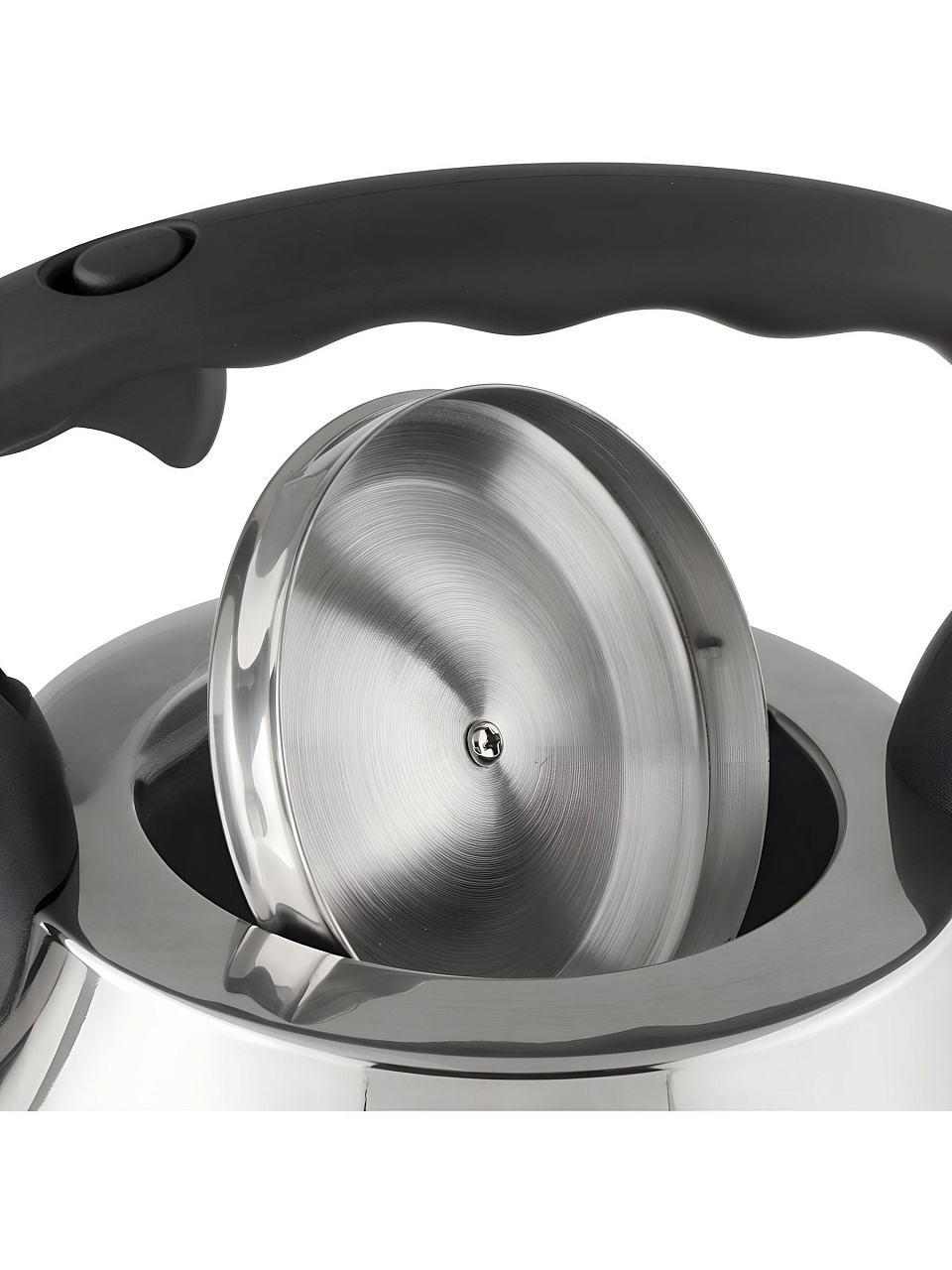 - Безопасность и комфорт — термоизолированная нейлоновая ручка, свисток для контроля закипания