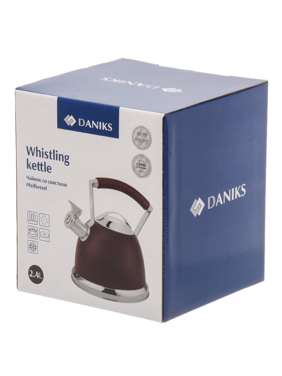 Вы можете приобрести «Чайник нержавеющая сталь, 2.4 л, со свистком, матовый, ручка с кремнеземом, нержавеющая сталь, Daniks, индукция, бордо, GS-04324B-2» и другие товары в нашем интернет-магазине в Нижнем Новгороде по низким ценам и с бесплатным самовывозом.
