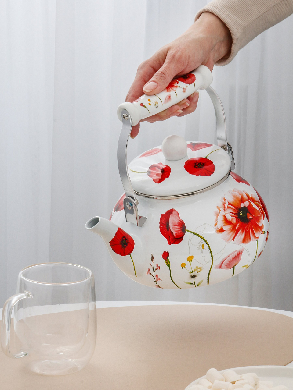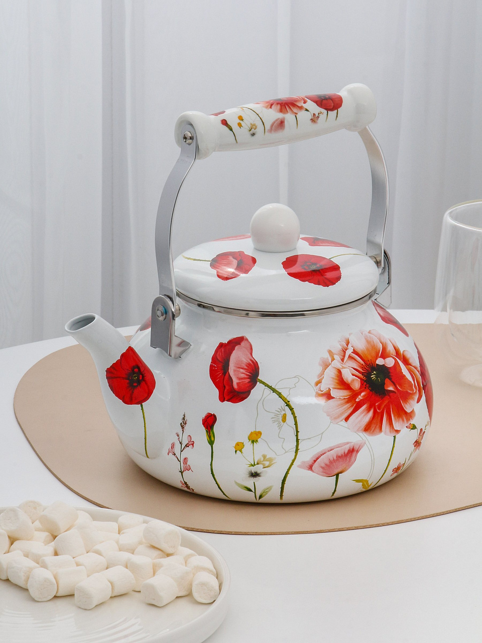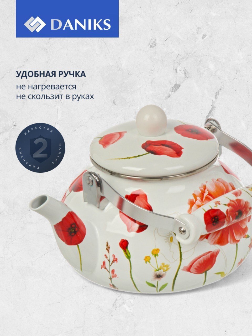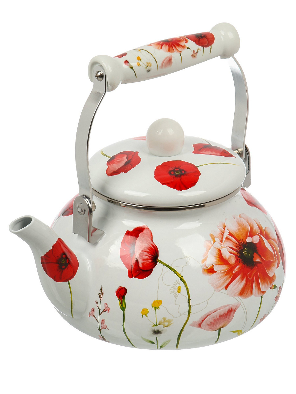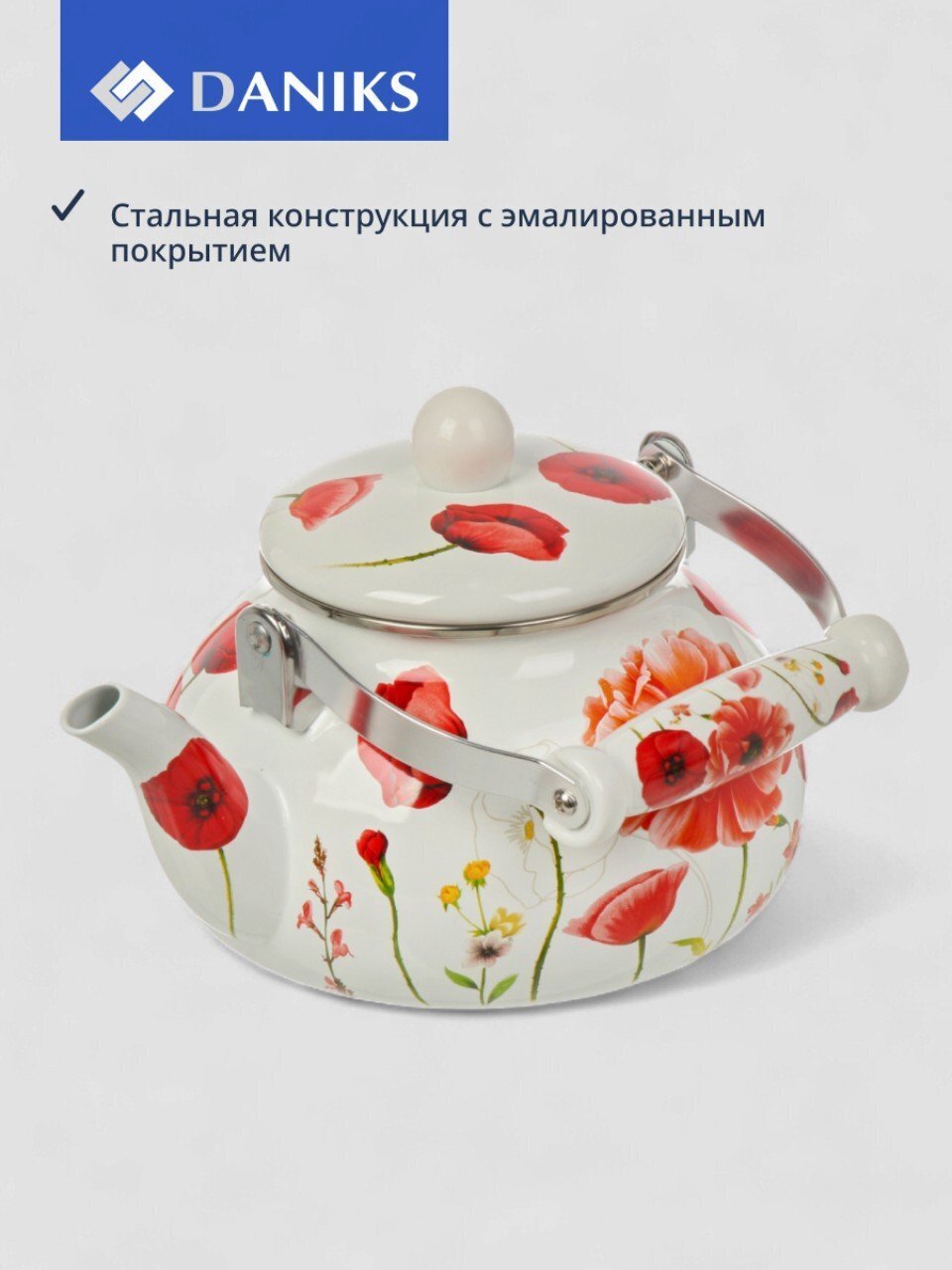 Чайник Daniks «Маки» 2.5 л: стильный эмалированный чайник из стали для индукции и любых плит — долговечность, удобство, выгодная цена
