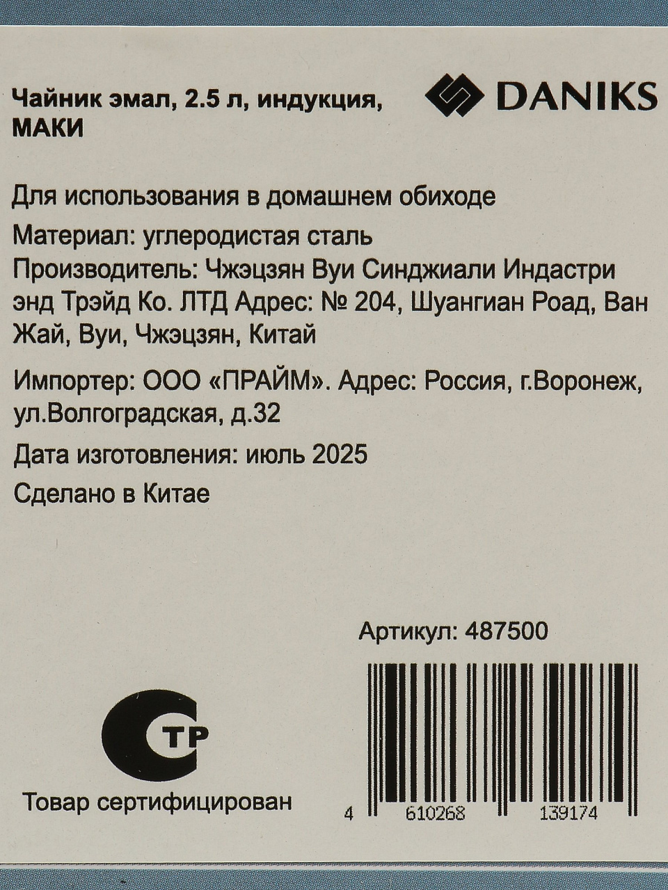 Часто спрашивают, чем отличается эмалированный чайник от обычного металлического: эмаль препятствует появлению накипи и продлевает срок службы изделия, а также сохраняет вкус воды. Daniks «Маки» не имеет свистка — это удобно для тех, кто предпочитает тишину или использует чайник для подогрева воды в больших объемах. Как выбрать чайник для дачи или подарка? Обратите внимание на универсальность: этот чайник легко моется в посудомоечной машине, подходит для любых плит и гармонично впишется в интерьер благодаря декору «Маки».