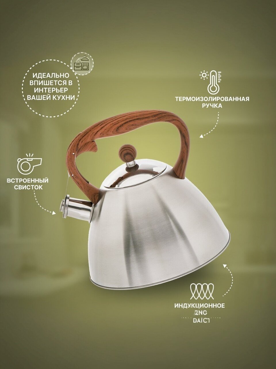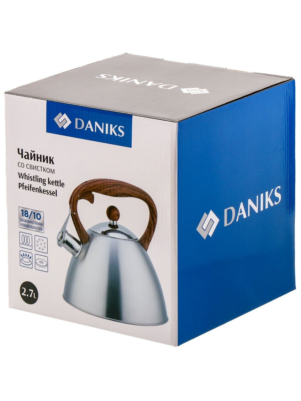Чайник со свистком Daniks - традиционный элемент кухни. Выглядит стильно и привлекательно, благодаря лаконичному дизайну он легко впишется в разнообразные интерьеры.