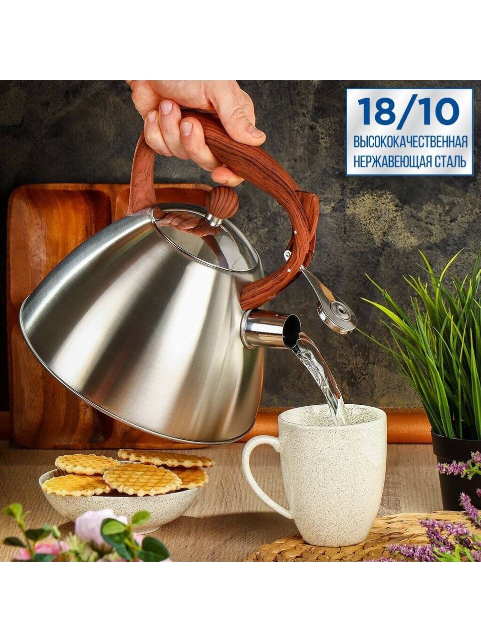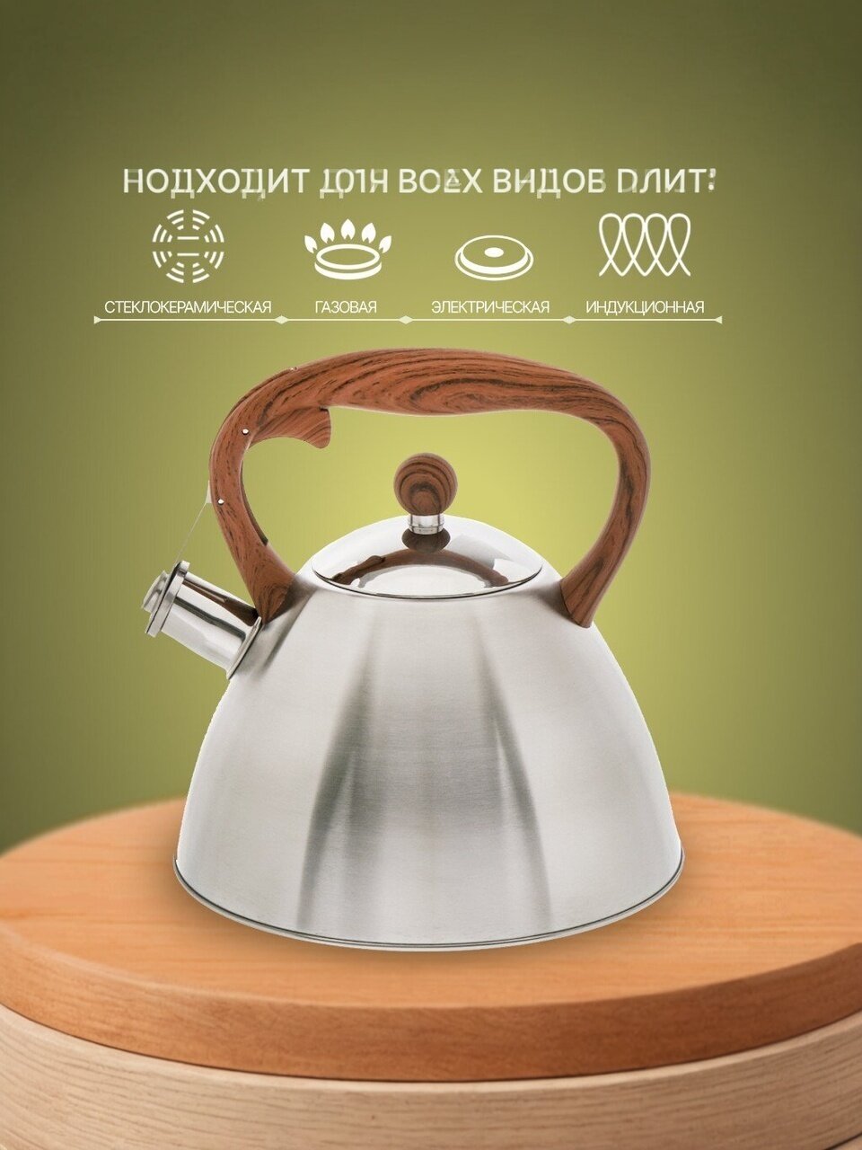 Вы можете приобрести «Чайник нержавеющая сталь, 2.7 л, со свистком, сатинированный, ручка бакелитовая, с силиконовым покрытием, Daniks, индукция, PR-2203» и другие товары в нашем интернет-магазине в Санкт-Петербургe по низким ценам и с бесплатным самовывозом.