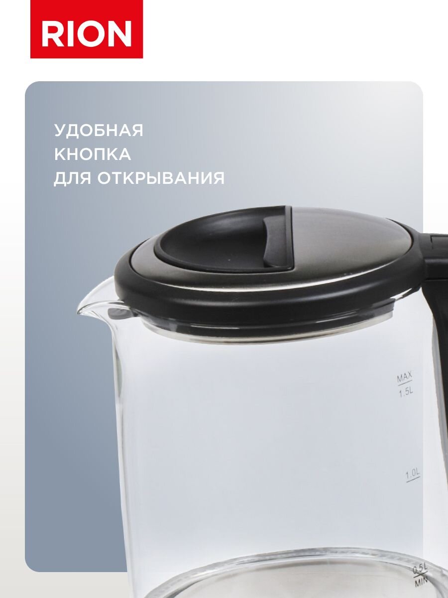Вы можете приобрести «Чайник электрический Rion, CX-K311-18, 1.5 л, 1500 Вт, скрытый нагревательный элемент, стекло, пластик» и другие товары в нашем интернет-магазине в Борисоглебске по низким ценам и с бесплатным самовывозом.