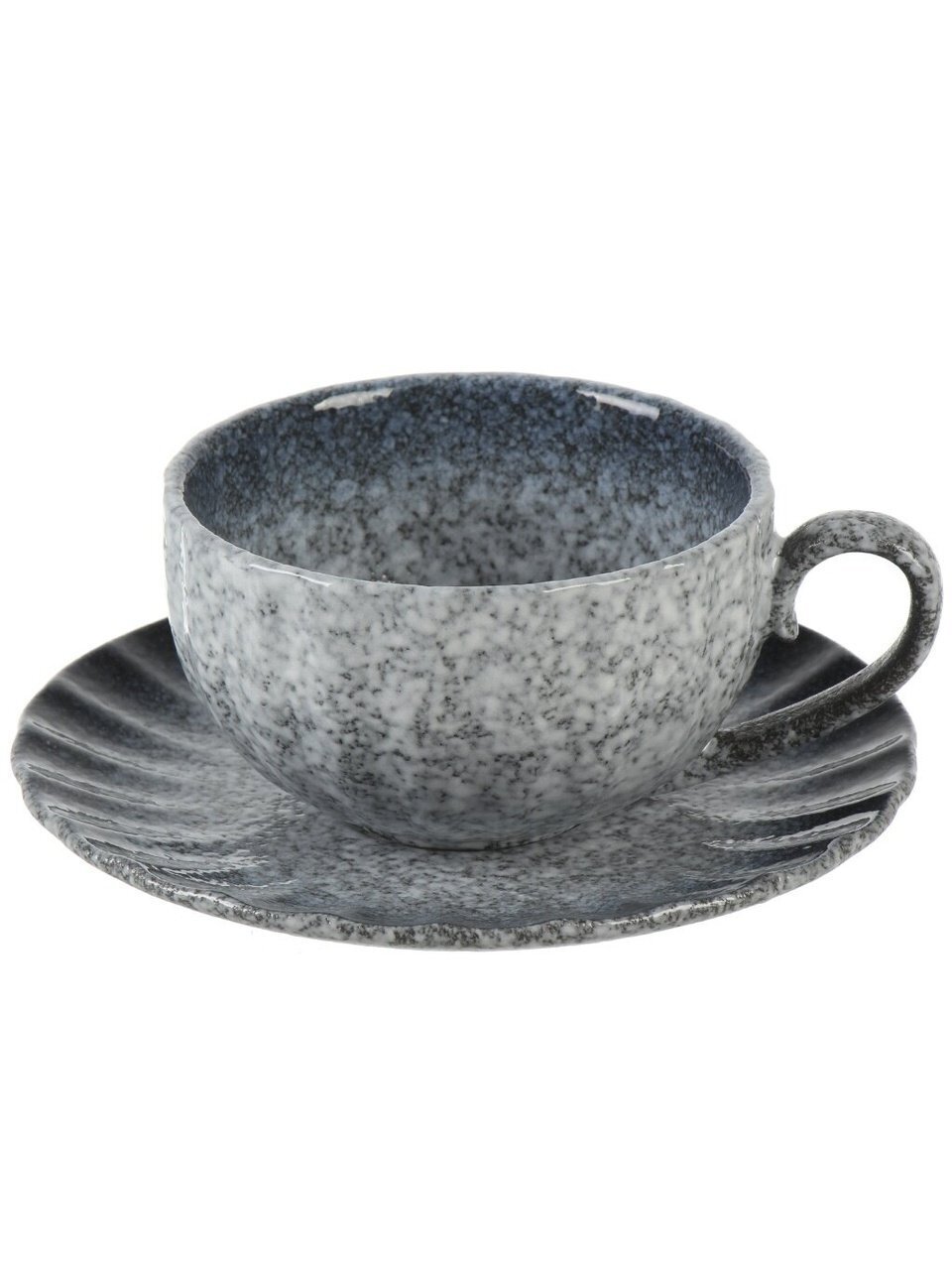 Чайная пара "Затмение" выполнена из высококачественной керамики, которая обеспечивает долговечность и приятные тактильные ощущения. Серый цвет и изысканный узор добавляют утонченности и современности, делая каждое чаепитие особенным. Круглая форма блюдца подчеркивает гармонию и завершенность дизайна.