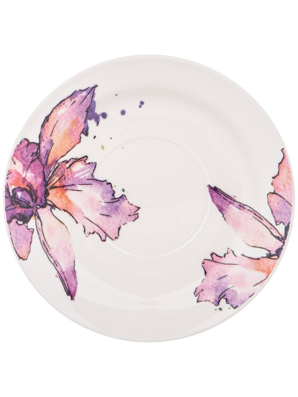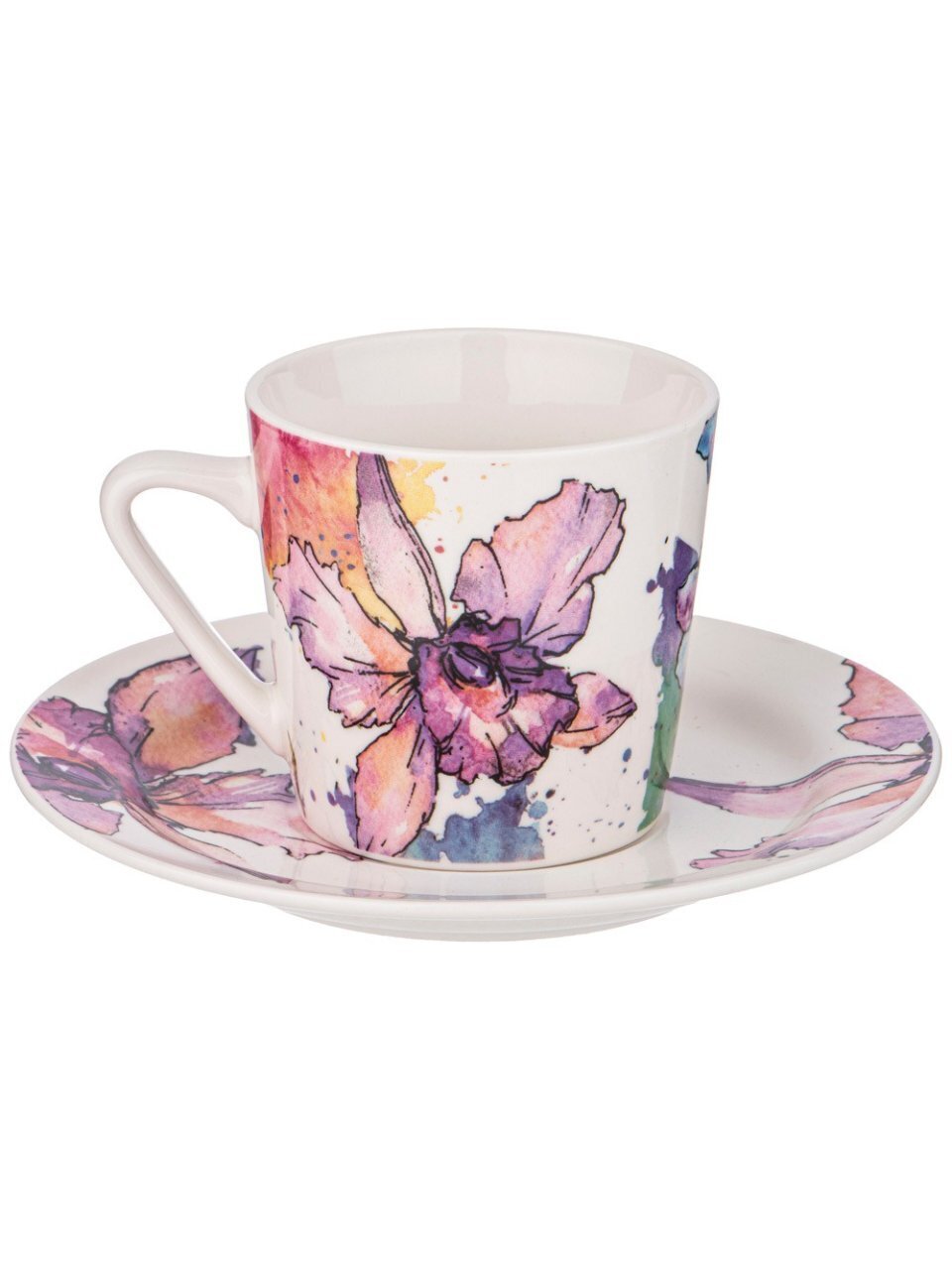 Чашка рассчитана на 250 мл, изготовлена из высокопрочного фарфора с изысканным декором "Орхидея". В комплекте 2 предмета: чашка и блюдце.
