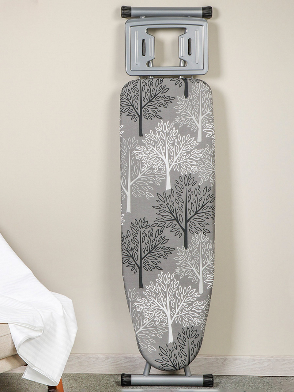 Элона оснащена подставкой для утюга, что обеспечивает дополнительное удобство при смене белья и позволяет избежать случайных повреждений поверхности.