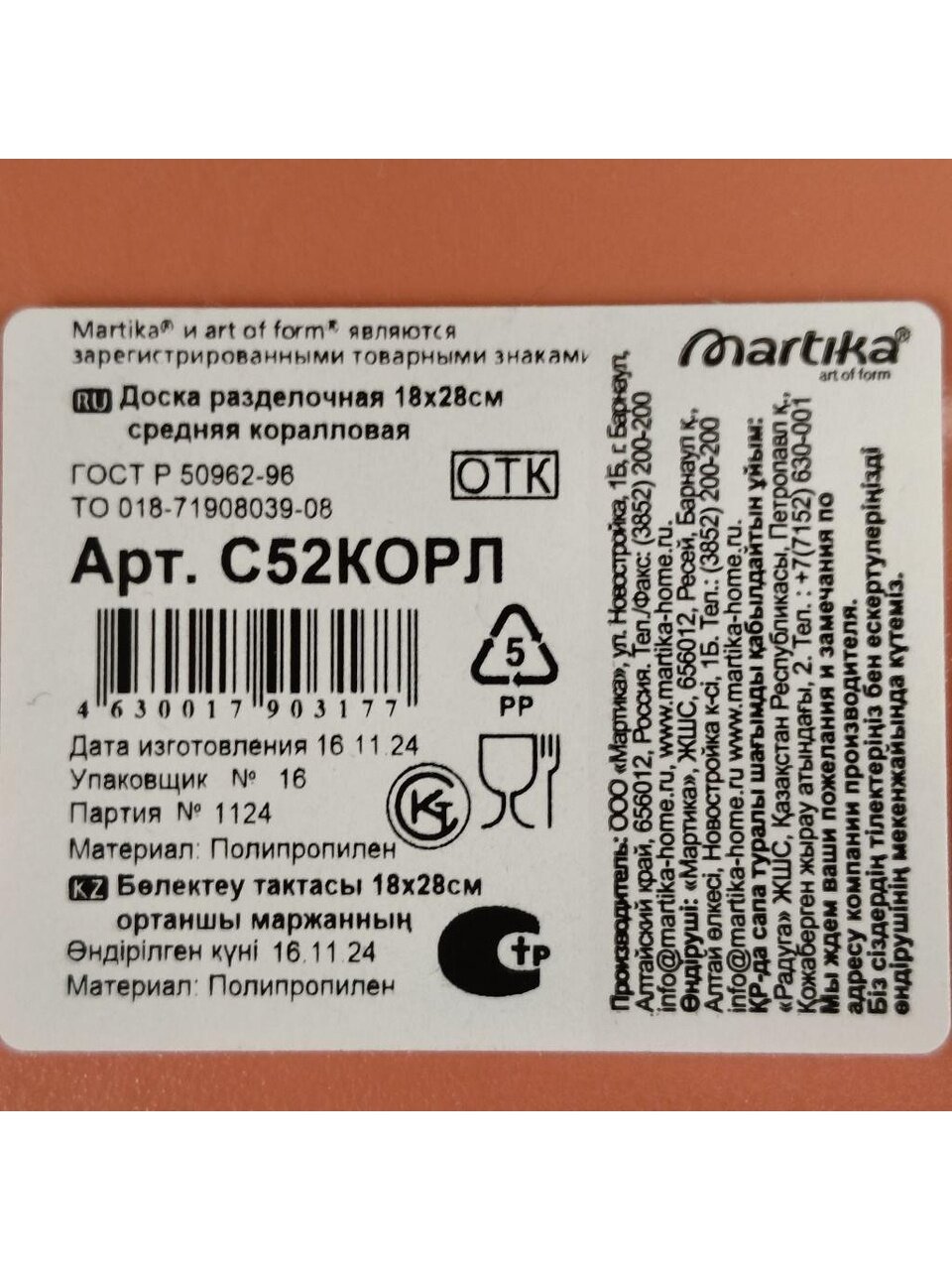 Разделочная доска "Мартика" может применяться для различных видов продуктов. Доска имеет привлекательный современный дизайн и снабжена желобком для стока жидкости для удобства применения. Доска не впитывает запахи, устойчива к воздействию ножом, благодаря чему изделие более долговечно. На кухне рекомендовано иметь несколько досок для различных видов продуктов: мяса, рыбы, хлеба и овощей.