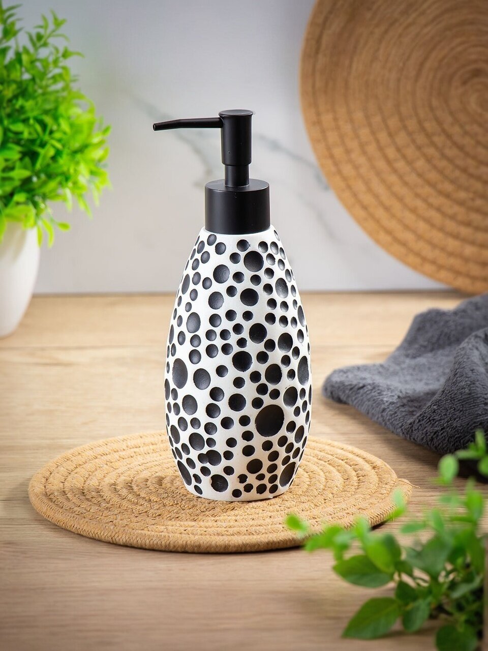 Погрузитесь в мир стиля и функциональности с дозатором для жидкого мыла из полистоуна. Этот изысканный аксессуар станет не только практичным решением для ванной комнаты или кухни, но и стильным акцентом в интерьере. Современный черно-белый дизайн и качественные материалы делают его отличным выбором для тех, кто ценит эстетику и надежность.