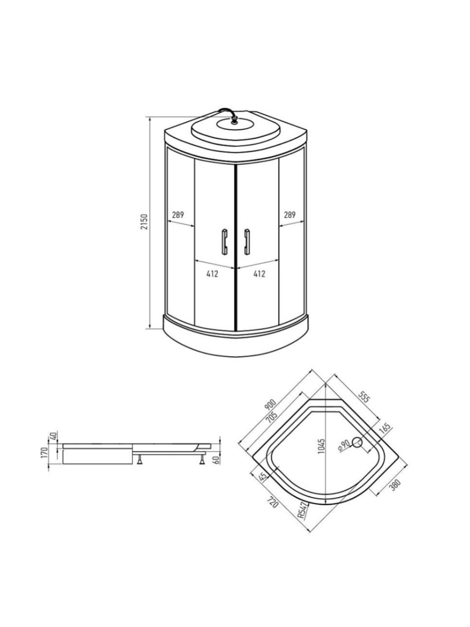 - Оптимальные размеры 90х90х215 см, низкий поддон 17 см из акрила — удобно заходить даже детям и пожилым.