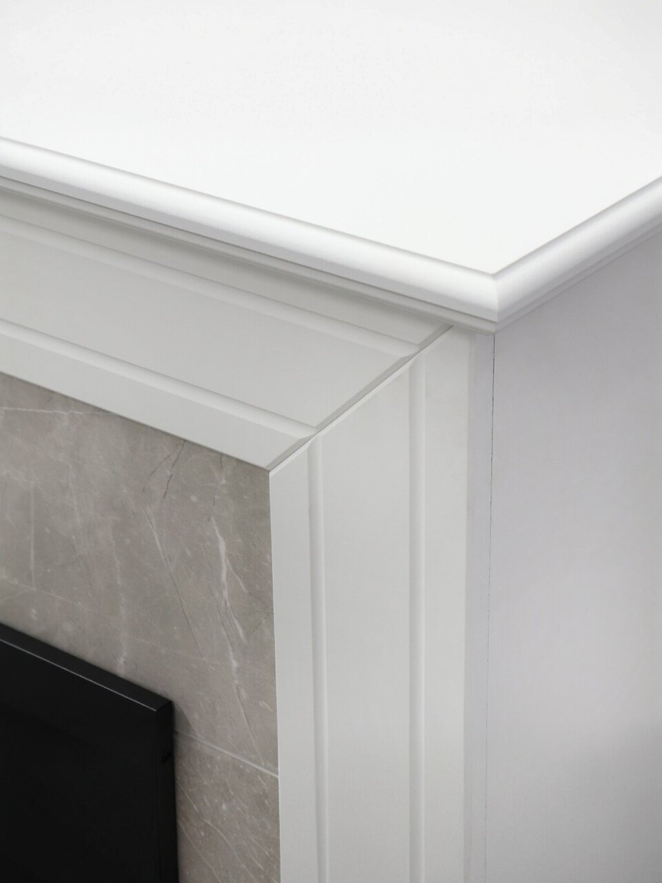 Ширина 1272 мм, высота 1030 мм, размер очага 26 дюймов. Портал выполнен в пастельно белом цвете, что гармонирует с современными интерьерами.