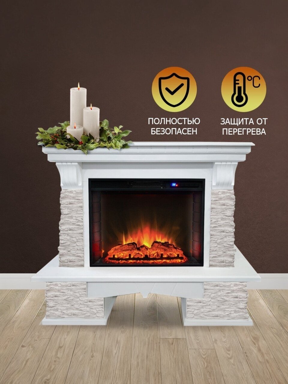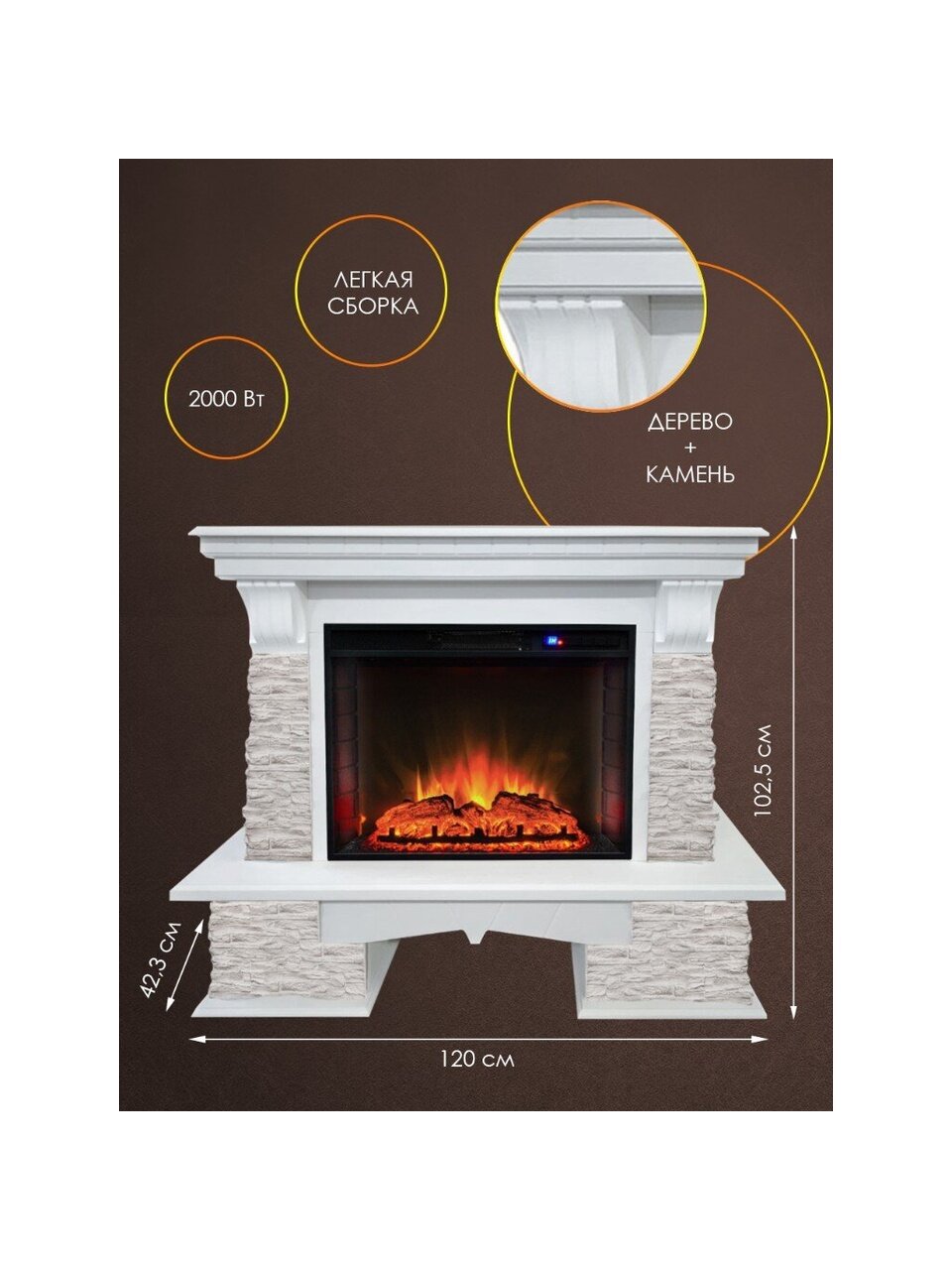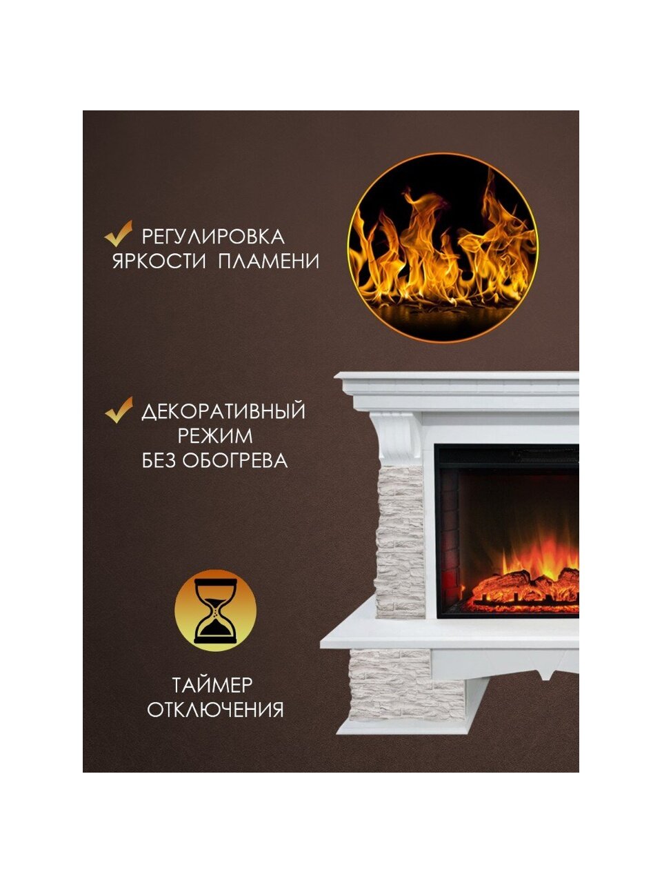 - Эксклюзивная комплектация: уникальное сочетание классического портала и современного электрокамина с реалистичным звуком потрескивания дров