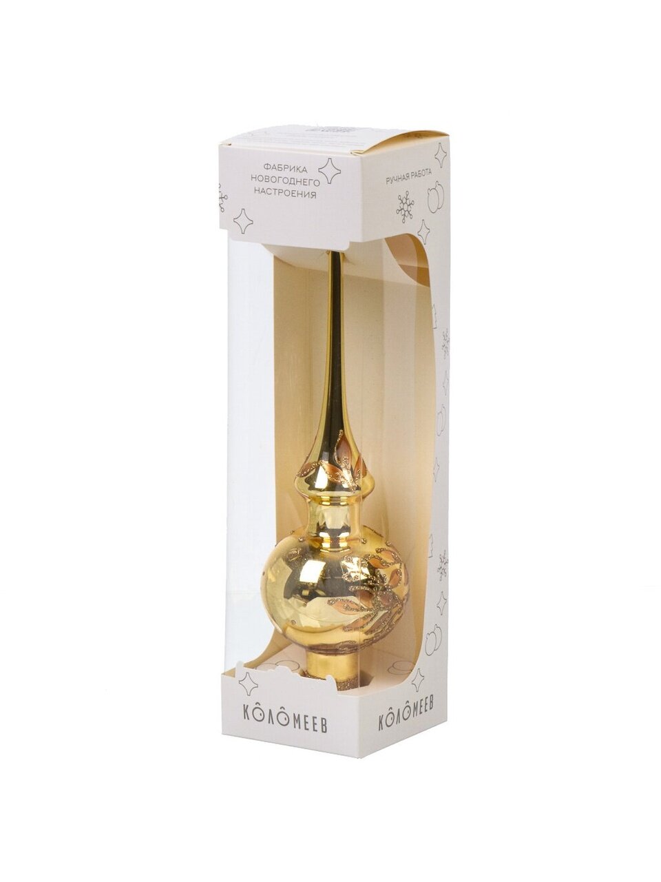 Верхушка на елку Графика 70 — стеклянная ручная работа с золотым блеском, элегантный акцент для новогоднего интерьера. Идеально для подарка или семейного праздника.