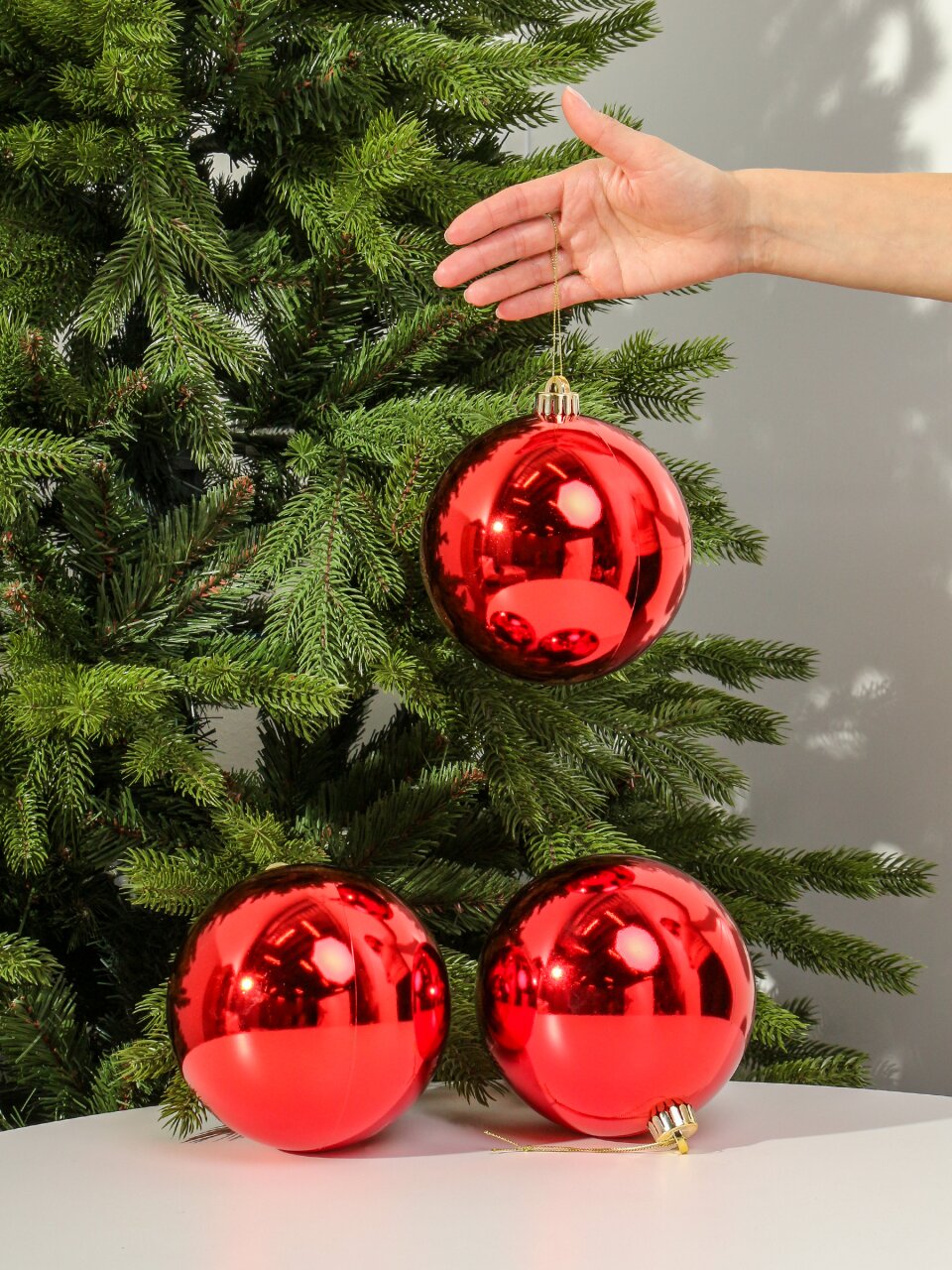 Набор елочных украшений «Шар» (3 шт, 15 см, красные, пластик): эффектный декор для дома и улицы — небьющиеся, стильные, выгодно купить для праздничного настроения.