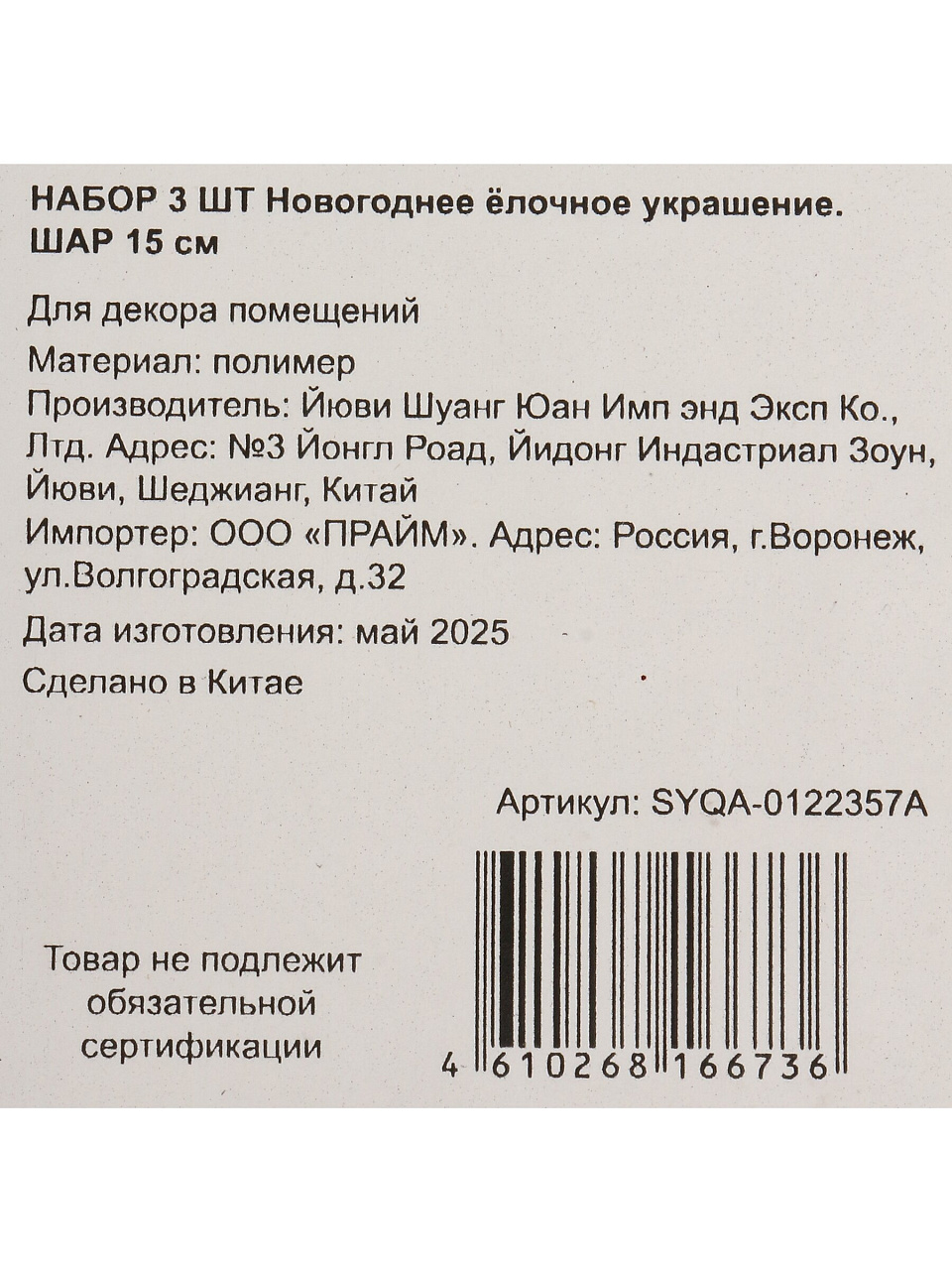 Покупатели часто спрашивают: «Как выбрать елочные шары для улицы?» — этот набор идеально подходит: пластик не боится влаги и перепадов температуры, а размер 15 см хорошо заметен даже на больших елках. В отличие от стеклянных аналогов, пластиковые украшения служат дольше и не требуют особых условий хранения. Если вы ищете, что лучше выбрать для дачи или для подарка, обратите внимание на этот комплект: шары поставляются в коробке, что удобно для хранения и транспортировки.