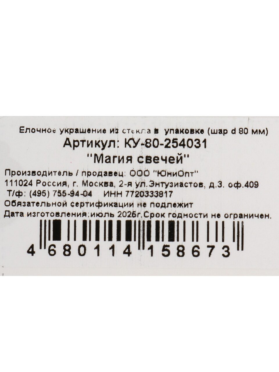 Вы можете приобрести «Елочный шар Магия свечей, 8 см, стекло, КУ-80-254031» и другие товары в нашем интернет-магазине в Шахтах по низким ценам и с бесплатным самовывозом.