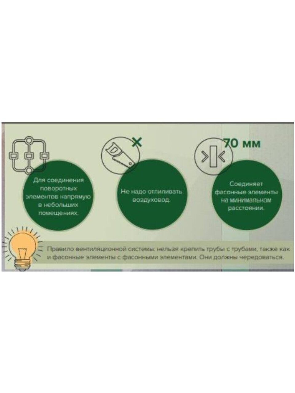 Соединитель поворотных элементов предназначен для соединения двух пластиковых фасонных элемента сечением 60х120 мм между собой. Представляет собой короткий участок прямоугольного пластикового канала. Вставляется внутрь двух соединяемых элемента пластиковой вентиляции.