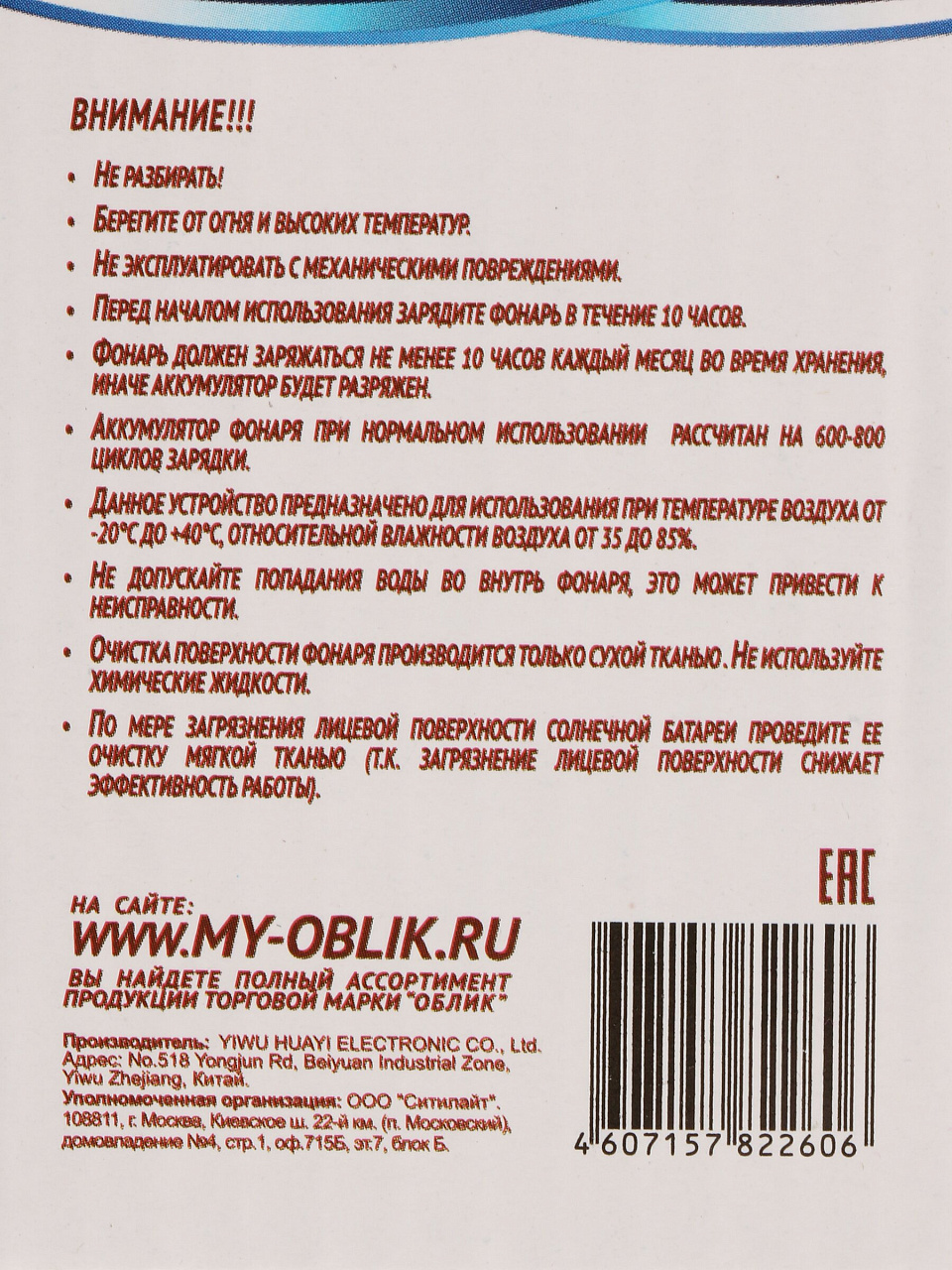 Монтаж максимально прост — крепится на вертикальную поверхность (стену, забор, столб) с помощью стандартных креплений. Не требует подключения к электросети: достаточно разместить фонарь так, чтобы на солнечную панель попадал дневной свет.