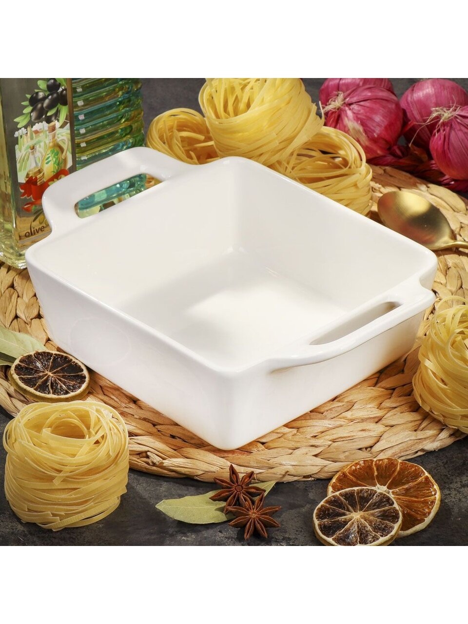 Объём формы — 1,3 л, размеры 18х18х7.4 см. Подходит для запекания мяса, овощей, десертов, приготовления лазаньи, порционных блюд для семьи из 2–3 человек.