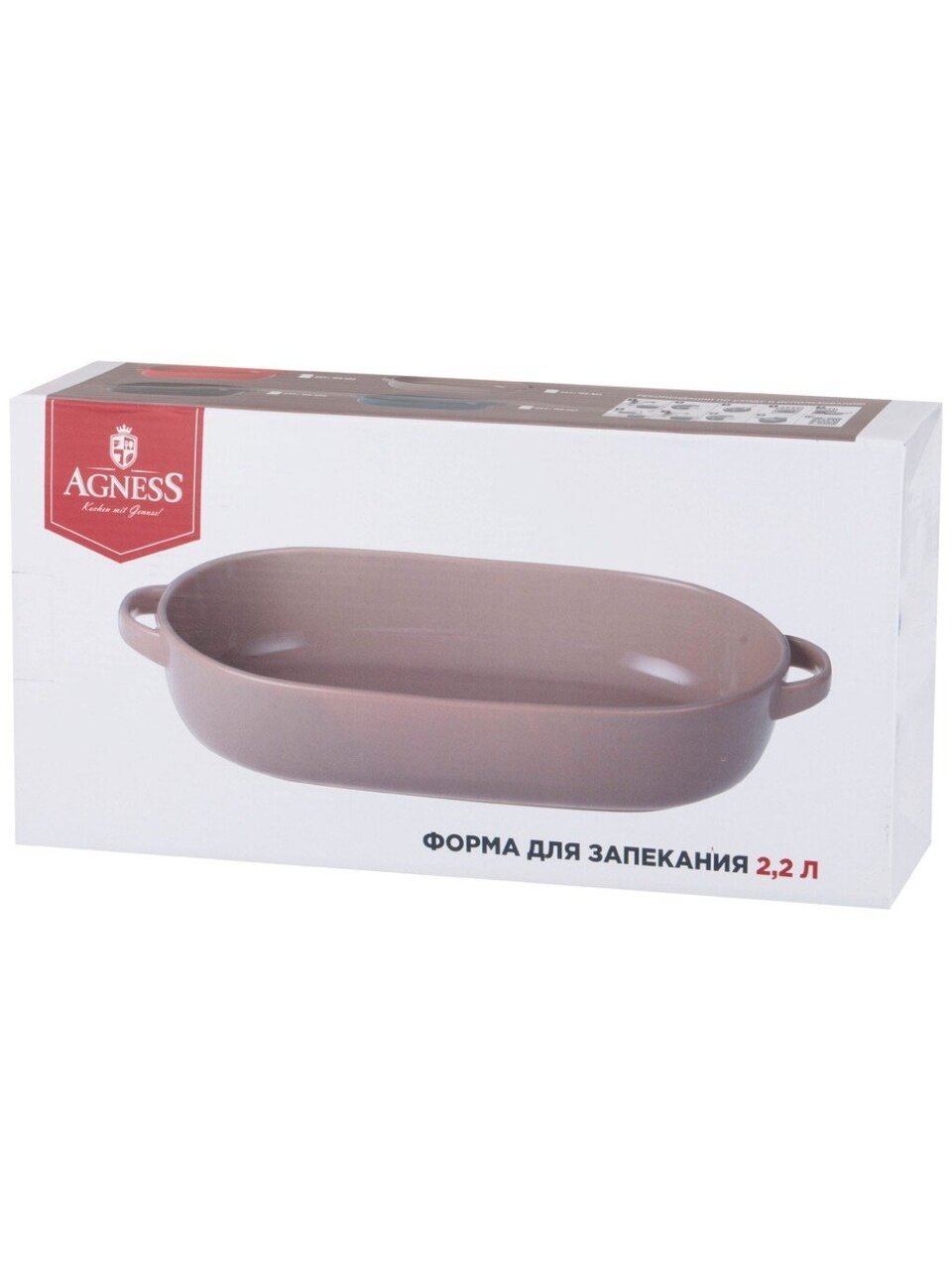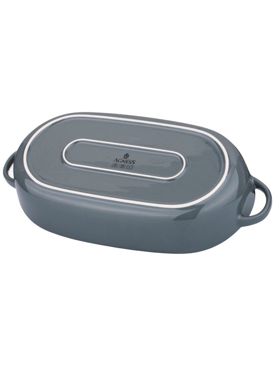 Овальная форма для запекания Agness 2,2 л из фарфора: идеальное решение для курицы, рыбы и пирога. Безопасна для СВЧ и посудомойки, стильный серый цвет.