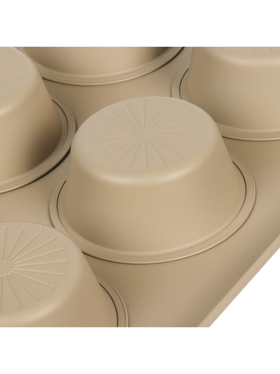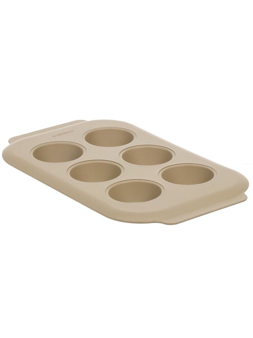 Если вы сравниваете, что лучше для кексов, маффинов или пирога — карбоновая сталь обеспечивает быстрый и равномерный нагрев, не деформируется при высоких температурах, а антипригарный слой облегчает уход. Форма не подходит для посудомоечной машины, но легко очищается вручную. Благодаря 6 ячейкам можно готовить сразу несколько порций, что удобно для больших компаний или подарков.