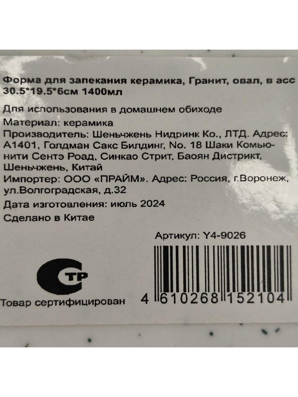 Форма для запекания керамика, 19.5х30.5х6 см, 1.4 л, овальная, в ассортименте, Гранит, Y4-9026 - фото 1 от пользователя