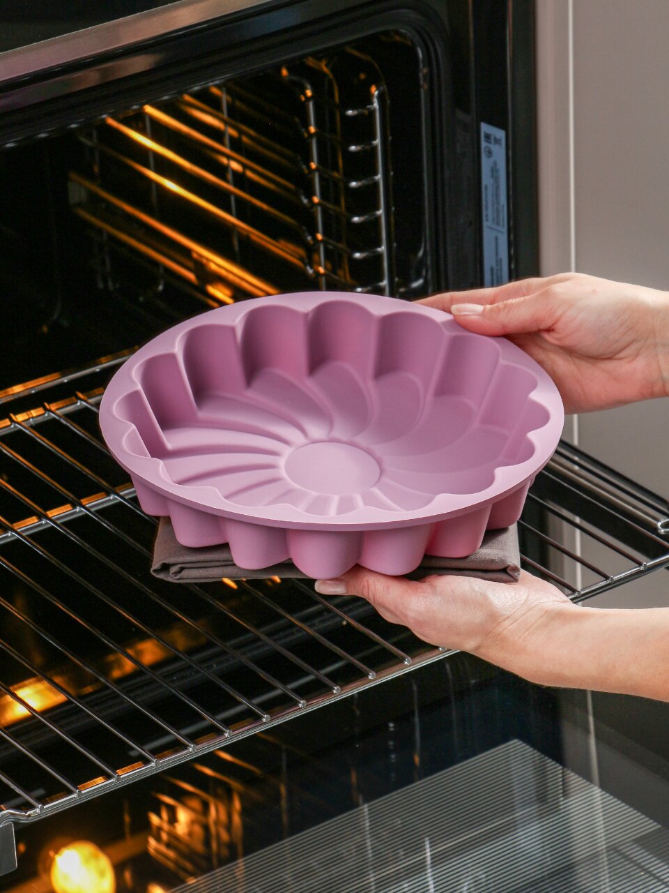 Силикон не ржавеет, не бьётся, не требует смазывания, выпечка легко извлекается, а форма сохраняет цвет и не впитывает запахи.