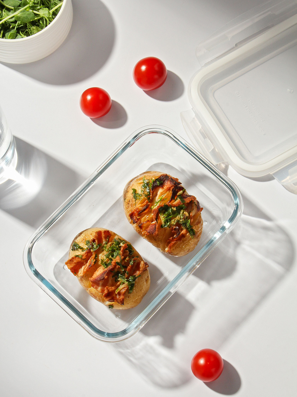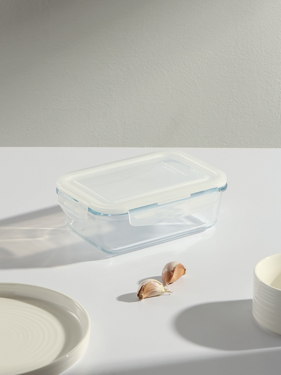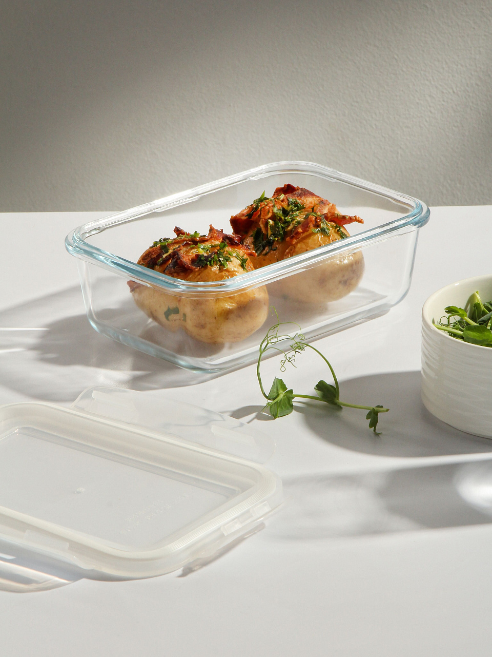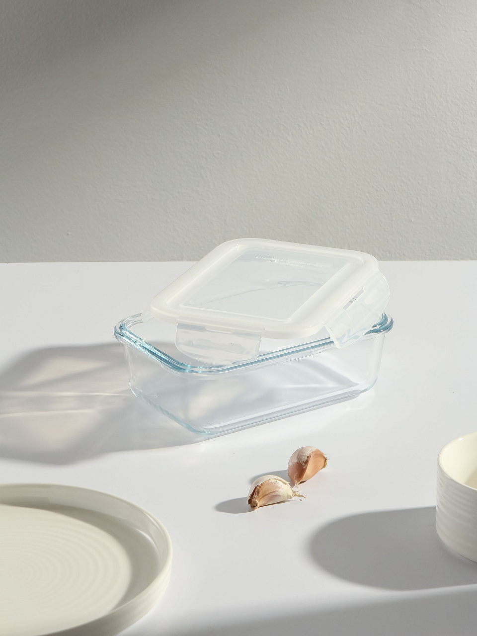 - Жаропрочное стекло: не впитывает запахи, подходит для духовки и СВЧ, крышка сохраняет свежесть блюд