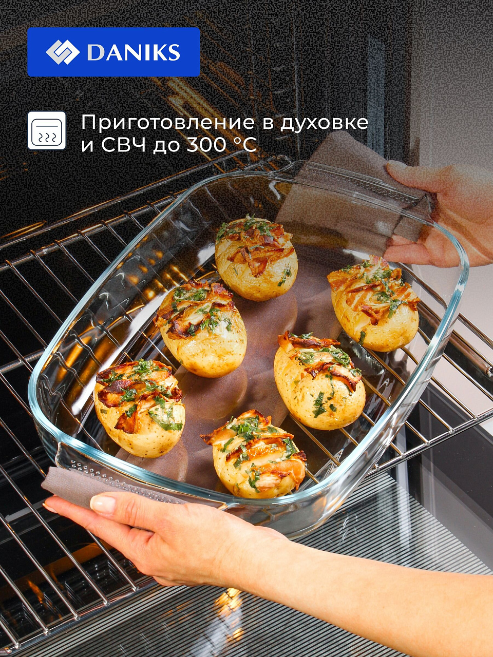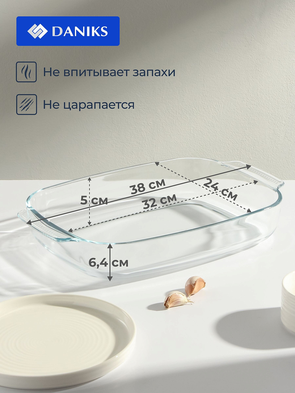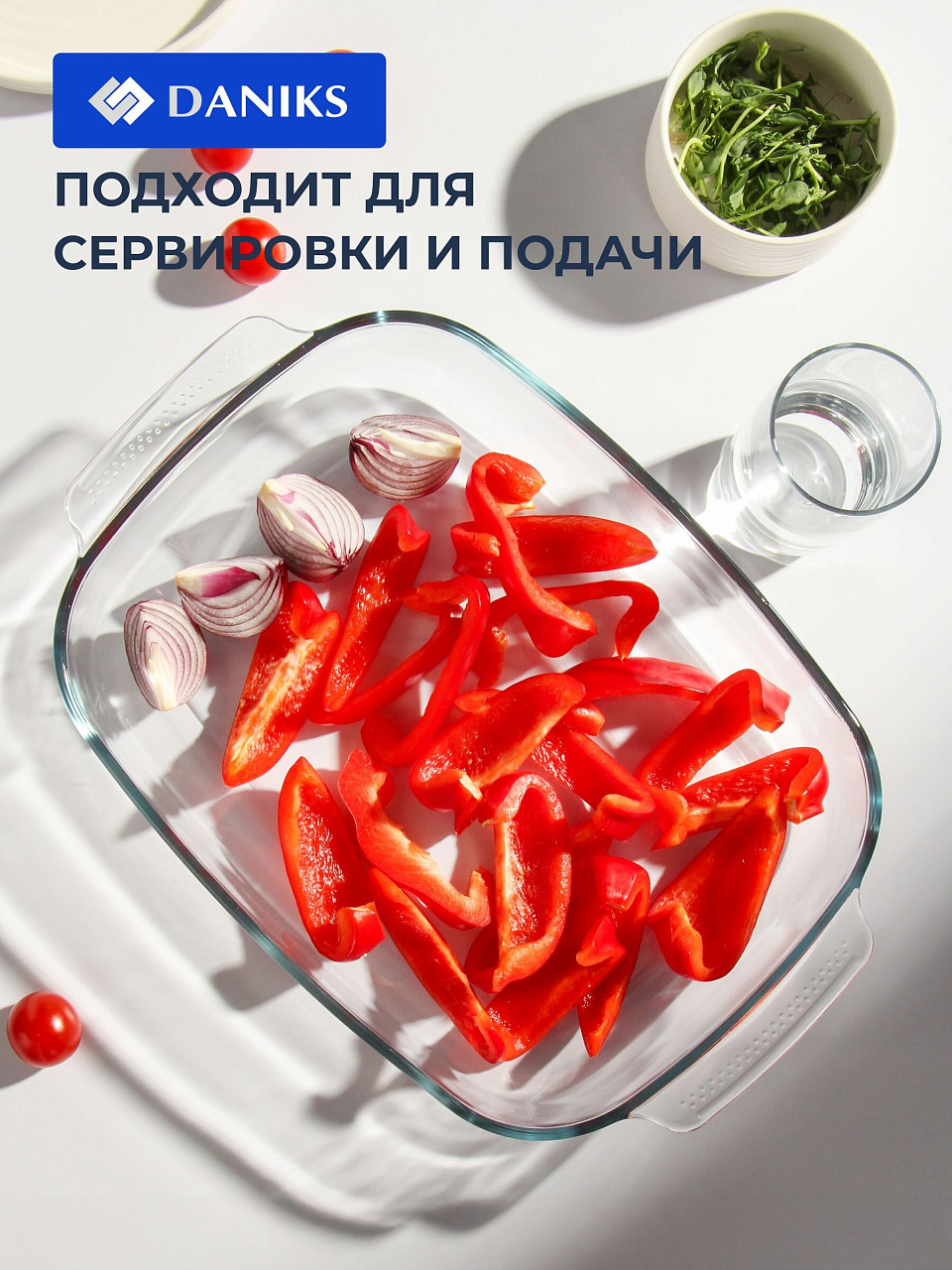 Прочная стеклянная форма Daniks 25.4х38х6.4 см (3.7 л): удобно запекать курицу, рыбу и пироги — идеальный выбор для дома и дачи.