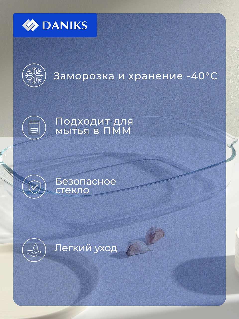 Форма для запекания Daniks из жаропрочного стекла — это надёжная посуда для приготовления курицы, рыбы, запеканок и пирогов. Благодаря универсальному объёму 3.7 литра и прямоугольной форме, она равномерно пропекает большие порции, сохраняя сочность продуктов. Если вы ищете, какую форму выбрать для духовки или СВЧ, обратите внимание: стекло не впитывает запахи и не окрашивается, а отсутствие антипригарного покрытия исключает появление вредных примесей при нагреве.