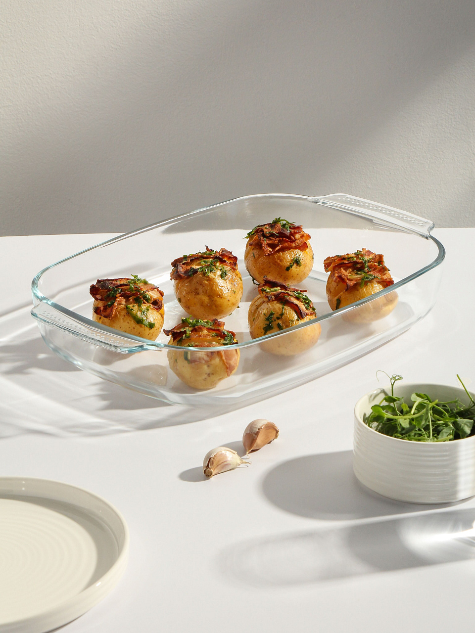 Если вы не знаете, как выбрать форму для запекания или ищете, что лучше для запекания курицы и рыбы, обратите внимание на вместимость 3.7 л: этого достаточно для ужина на 4-6 человек. Прозрачное стекло позволяет контролировать процесс приготовления, а отсутствие крышки даёт золотистую корочку. Форма не имеет рифлёного дна и съёмных элементов, что упрощает уход и хранение.