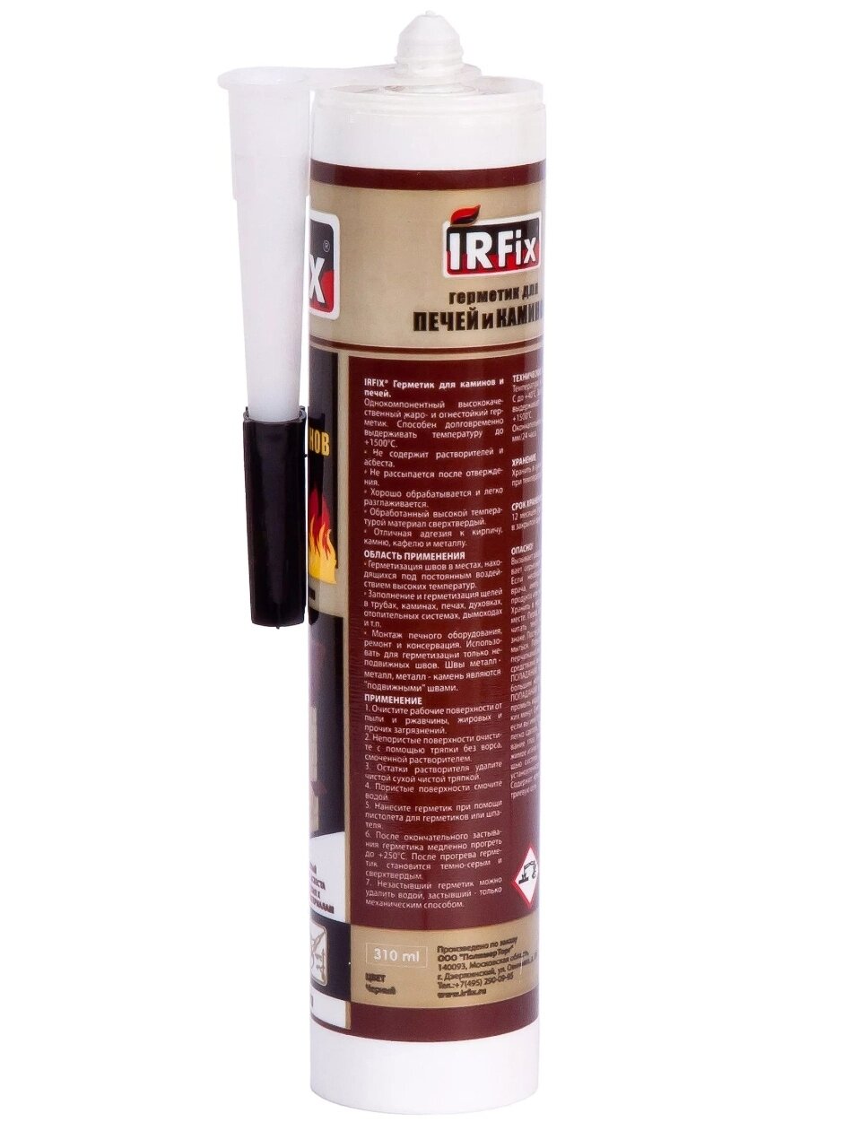 В отличие от акриловых и силиконовых аналогов, силикатная формула IRFix обеспечивает прочное сцепление с кирпичом, камнем и металлом. Герметик не растрескивается при нагреве, подходит для внутренних работ и легко наносится из картриджа с помощью стандартного пистолета. Многие спрашивают, как использовать герметик для камина — просто очистите поверхность, нанесите пасту и дайте высохнуть. Черный цвет гармонично сочетается с большинством печных и каминных конструкций.