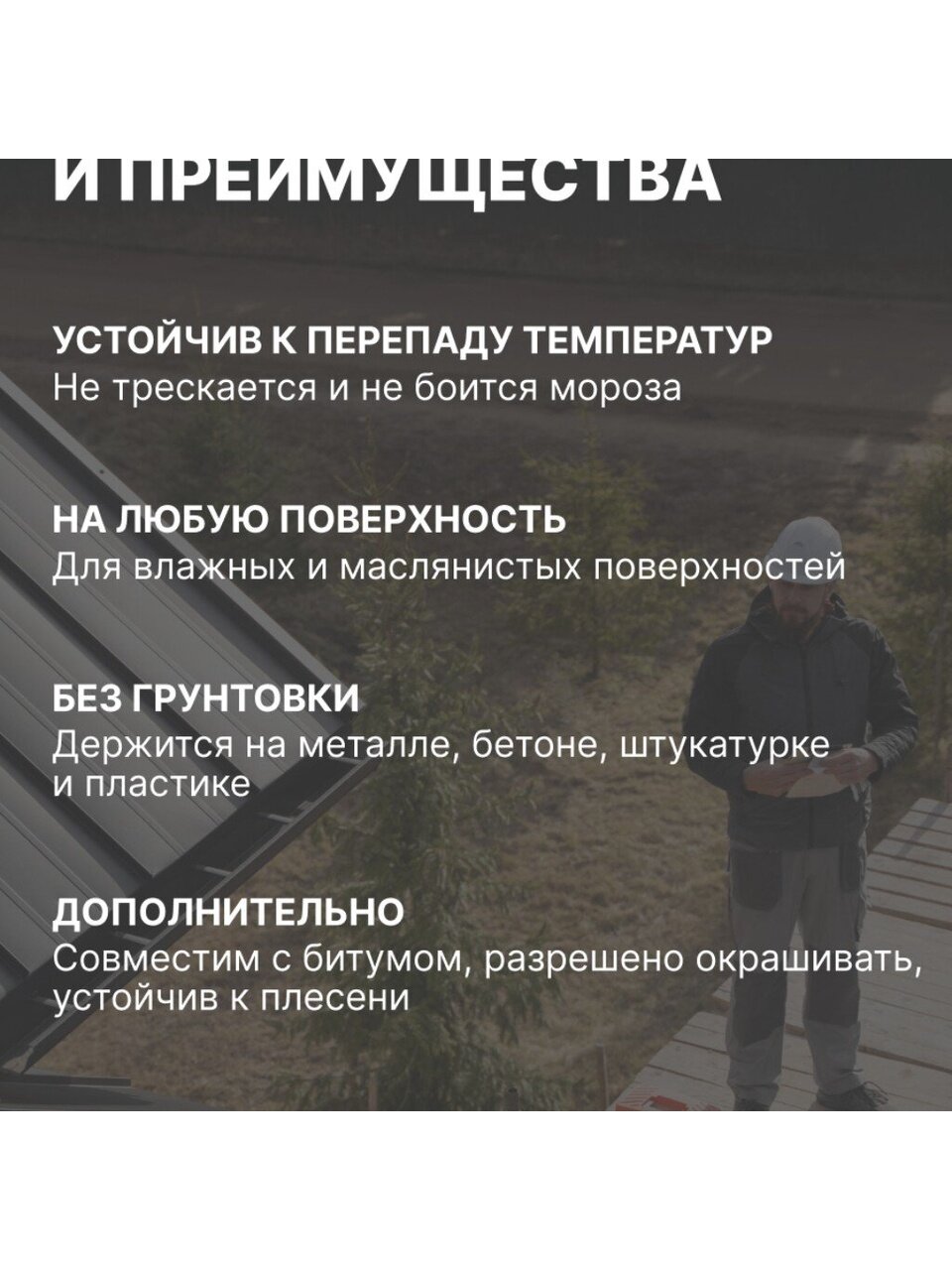 Высококачественный, однокомпонентный герметик на базе синтетического каучука. Соответствует требованиям ISO 11600 стандарт F типа, 12,5 класс Герметики. Высокоэластичен, можно окрашивать. Обладает отличной адгезией без использования грунтовки к большинству строительных материалов: бетону, штукатурке, металлическим листам и различным типам пластмасс. Отличная адгезия и совместимость с битумом, а также с влажными и маслянистыми основаниями. Устойчив к плесени и грибкам. Выдерживает 4 цикла заморозки.