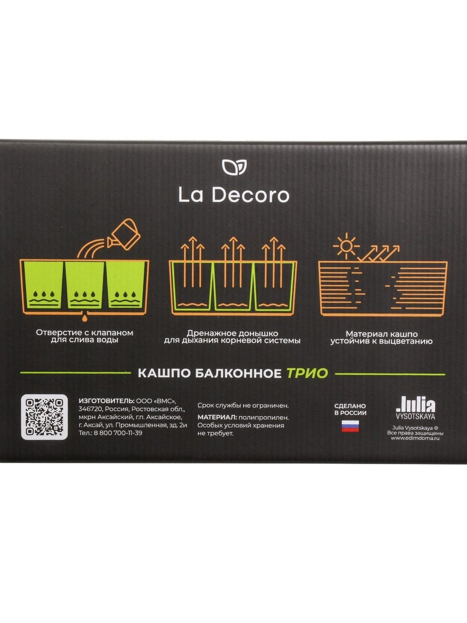 Покупка кашпо La Decoro – это инвестиция в комфорт и стиль вашего дома. Преобразите ваш балкон в место, где можно расслабиться и отдохнуть после долгого дня, окружив себя зеленью и цветами. Сделайте свой дом более привлекательным и уютным с помощью этого стильного и практичного аксессуара.