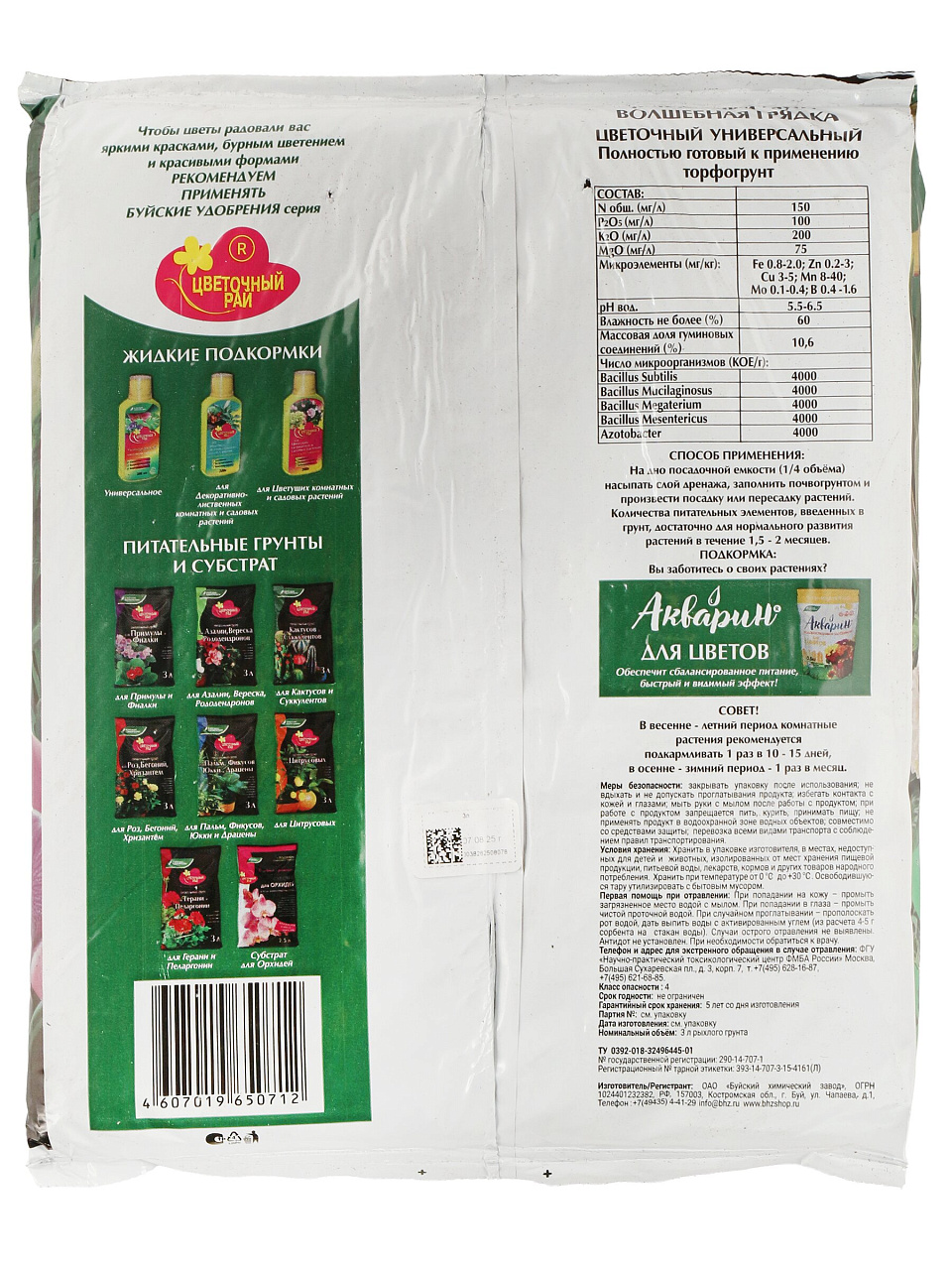 Объём упаковки — 3 литра. Этого достаточно для пересадки 2–3 средних комнатных растений или частичного обновления почвы в нескольких цветочных горшках.