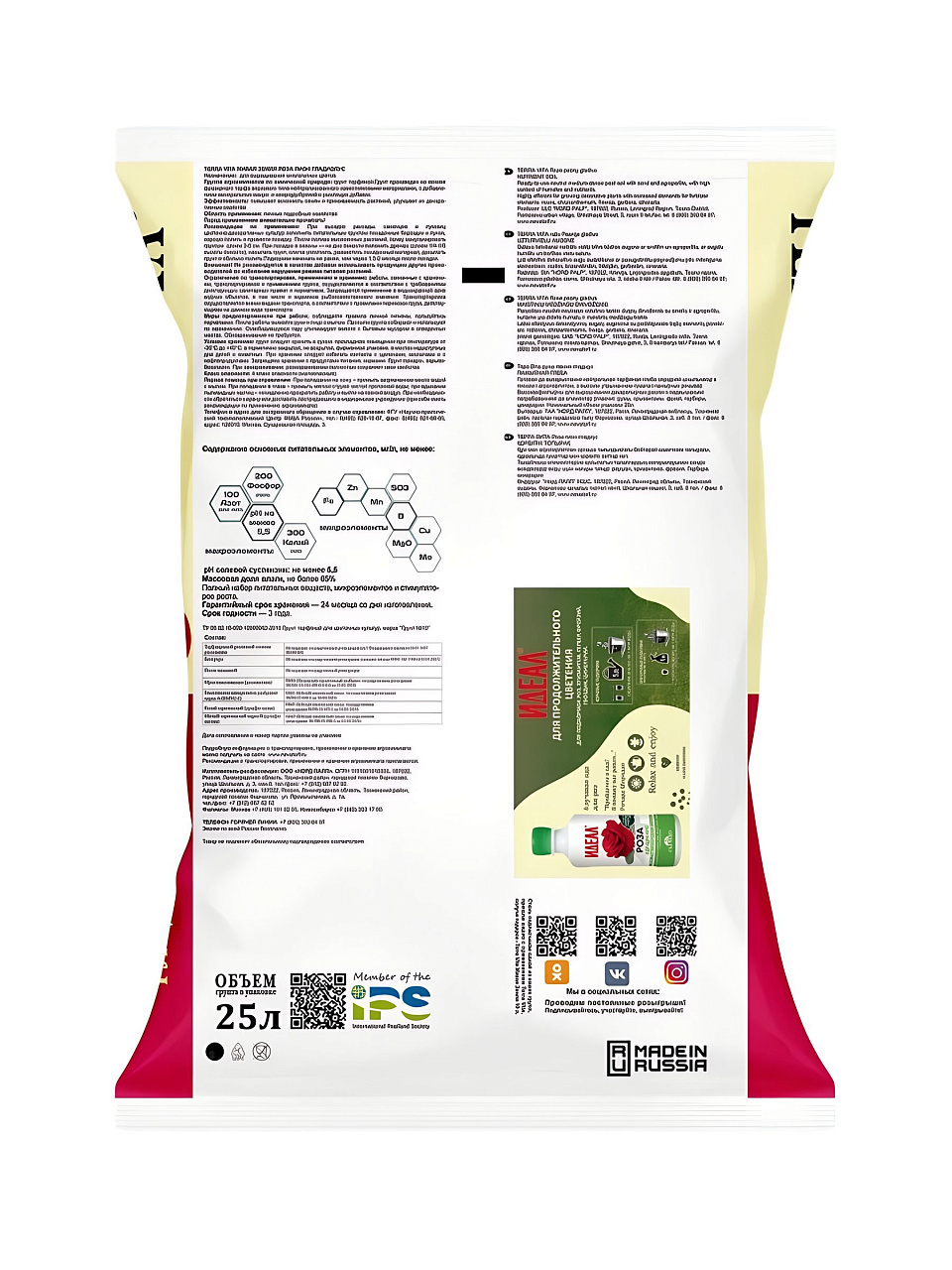Объем упаковки — 25 литров. Грунт специально разработан для роз, пионов, гладиолусов, но подходит и для других декоративных цветов.