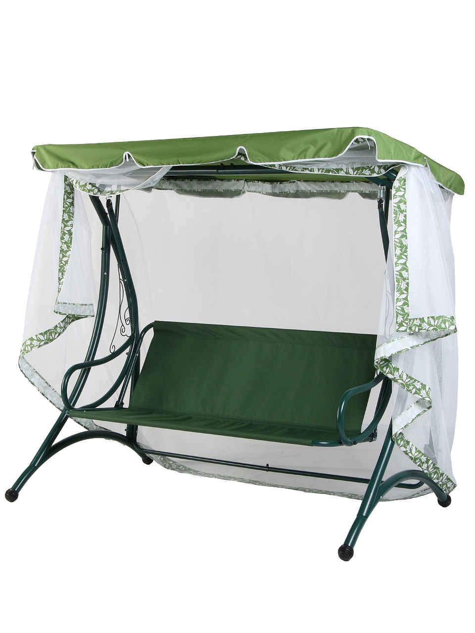 Качели садовые 3-местные Green Days 198х115х176 см — уют и защита от насекомых для вашего сада. Расслабьтесь всей семьёй, выдерживают до 250 кг!