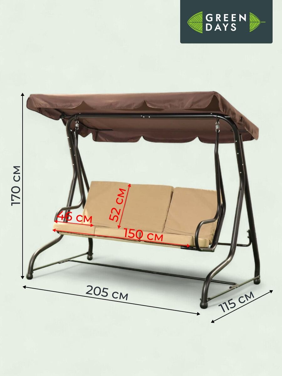 Вы можете приобрести «Качели садовые 3-местные, 195х120х170 см, 200 кг, Green Days, бежевые, YT8050, коричневая крыша, металл» и другие товары в нашем интернет-магазине в Тамбове по низким ценам и с бесплатным самовывозом.