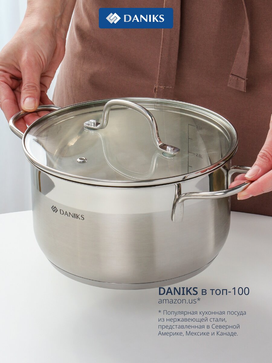В отличие от аналогов без капсульного дна и мерной шкалы, эта кастрюля ускоряет процесс приготовления и предотвращает пригорание. Стеклянная крышка с выпускным клапаном позволяет следить за процессом готовки и сохраняет вкус блюда. Если вы спрашиваете, подходит ли кастрюля Daniks для посудомоечной машины — да, уход за ней максимально прост. Для каких блюд лучше использовать: макароны, супы, пельмени, каши, пюре — универсальный объем 3.6 л идеален для семьи из 2-4 человек.