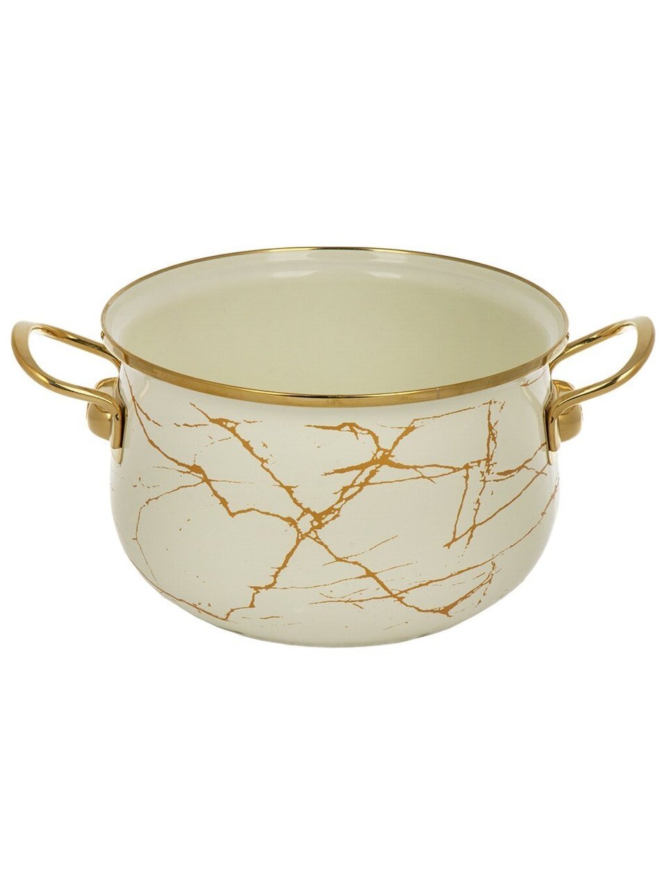 Кастрюля Daniks Белый мрамор 2 л: стильная эмалированная сталь для индукции и любых плит. Безопасное приготовление супов, каш и пасты — удобно дома и на даче.