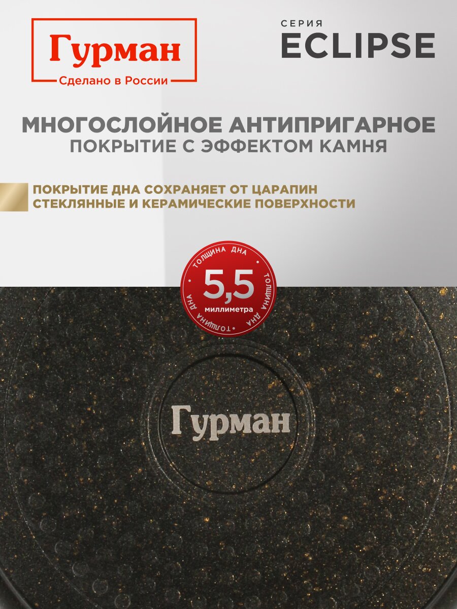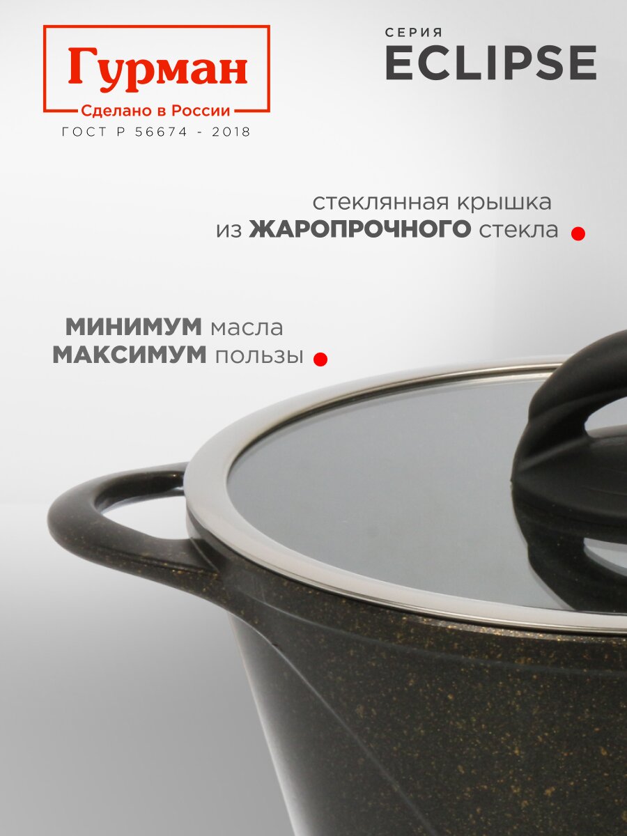 Кастрюля 2 л Гурман Eclipse с антипригарным гранитным покрытием: готовьте быстро, легко и без пригорания на любой плите. Лучший выбор для дома и дачи.